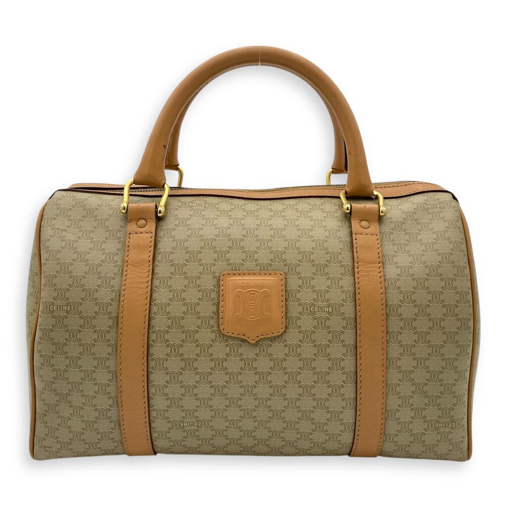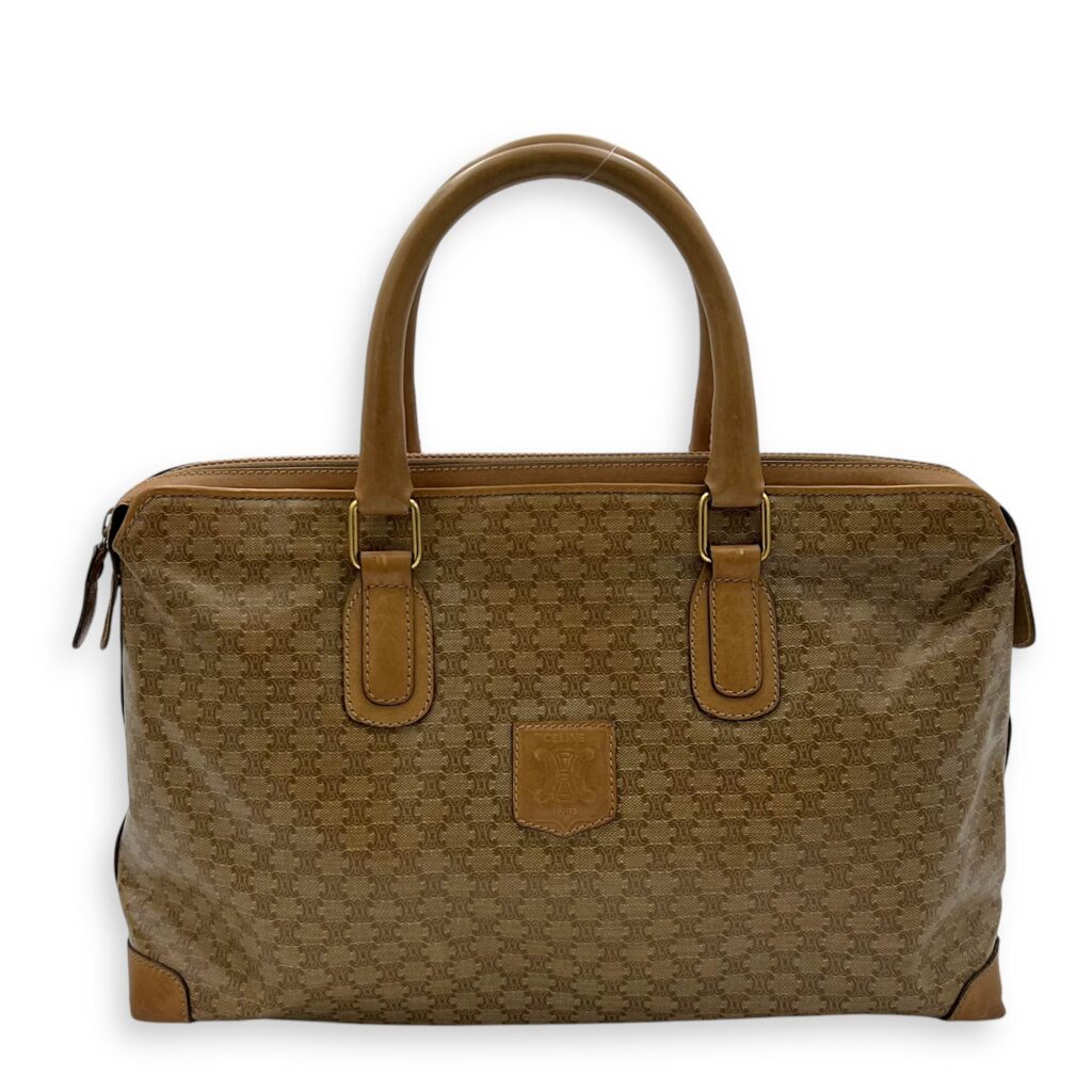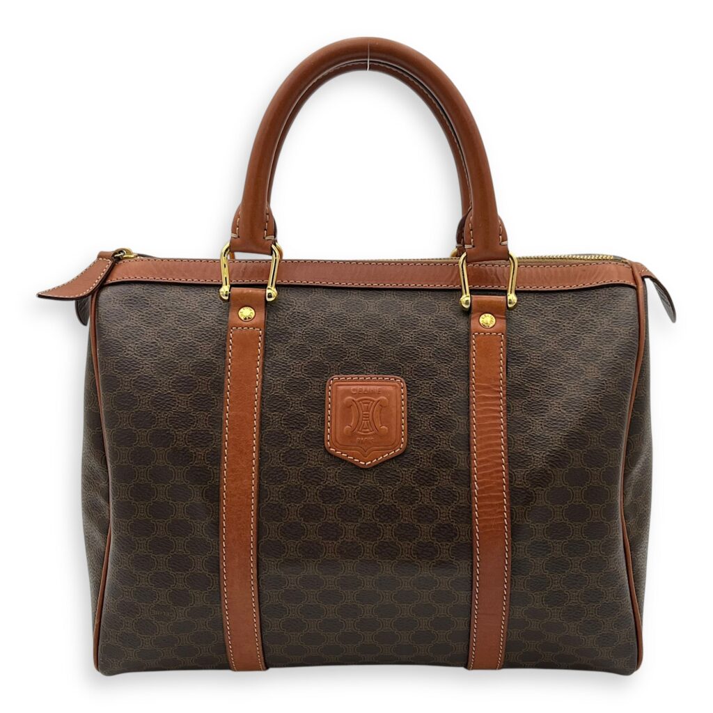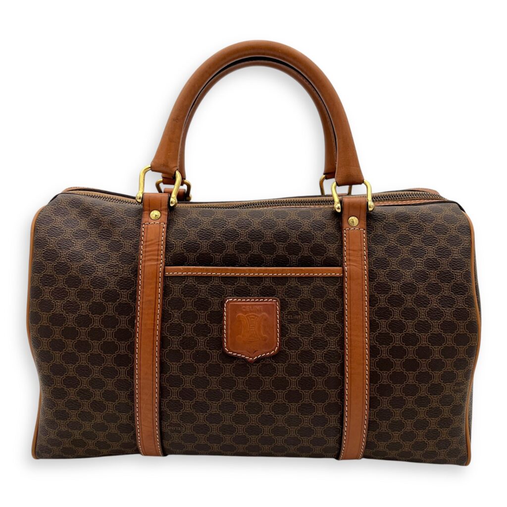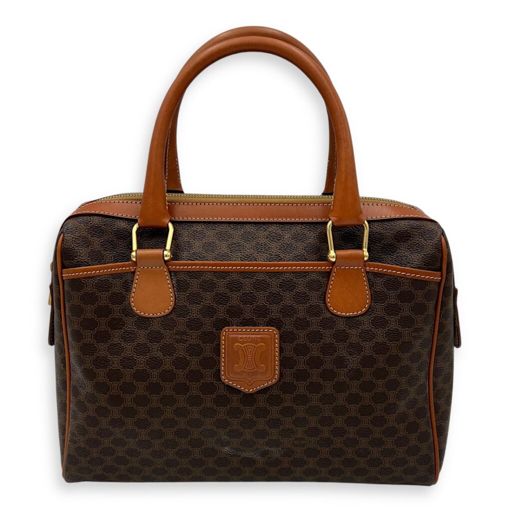 Macadam Boston Brown Top Handle Bag in Coated Canvas, Gold hardware