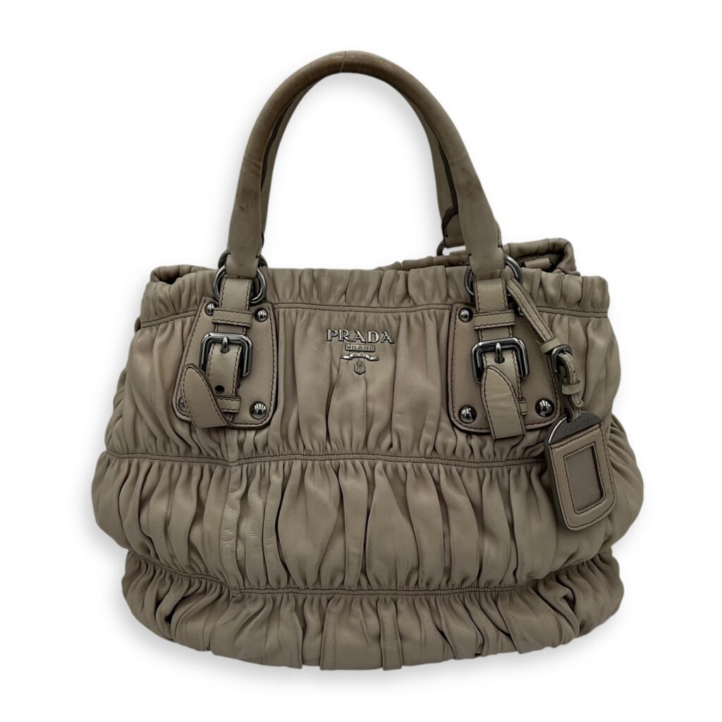 Gaufre Satchel Beige Top Handle Bag in Lambskin, Silver hardware