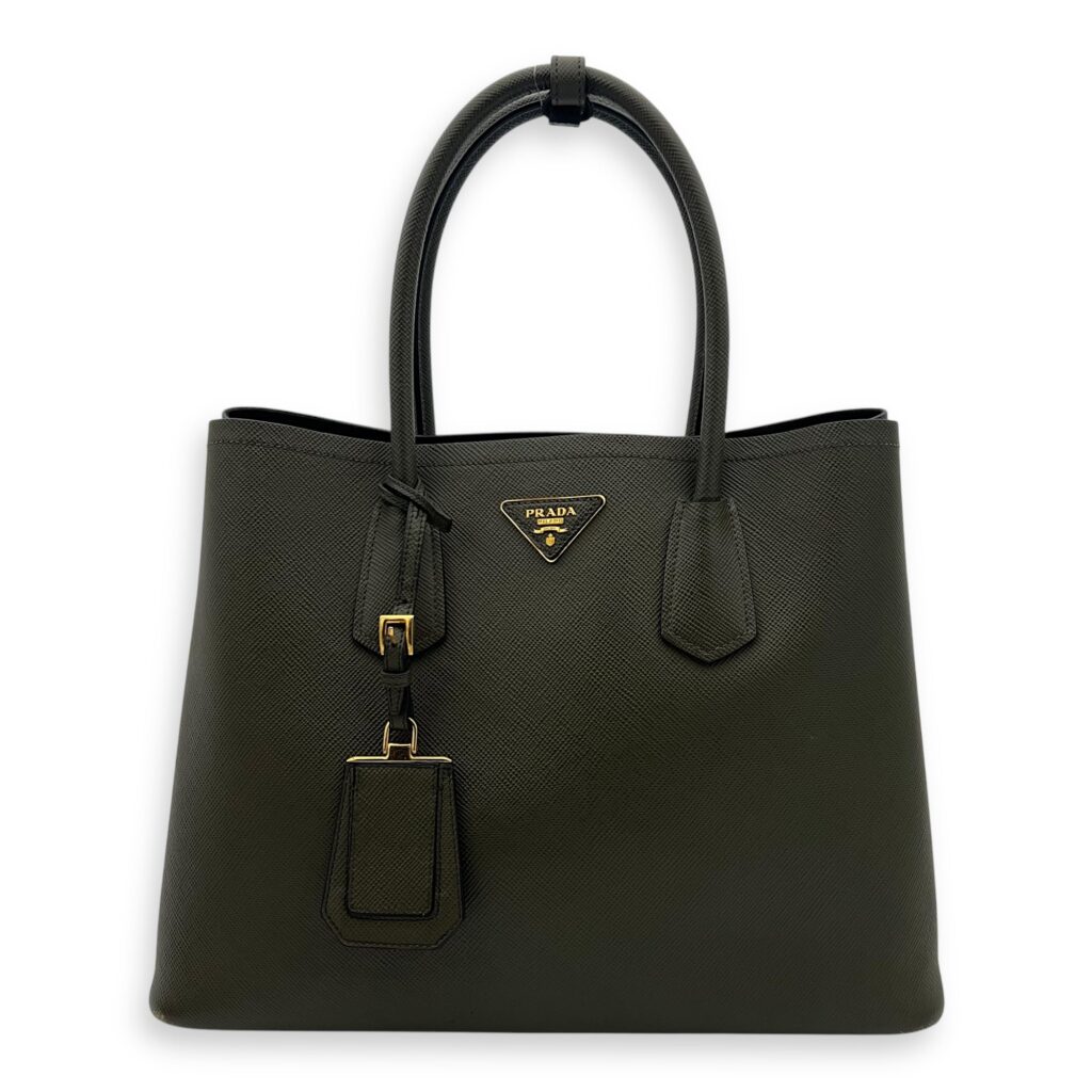 Double Top Handle Bag Green in Saffiano Leather, Gold hardware