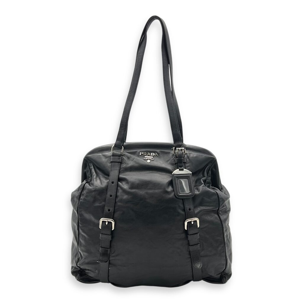 Frame Shoulder Bag Black in Calfskin, Silver hardware