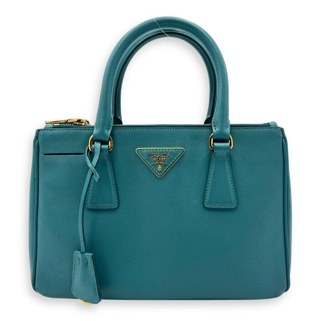 Galleria Top Handle Bag Blue in Saffiano Leather, Gold hardware