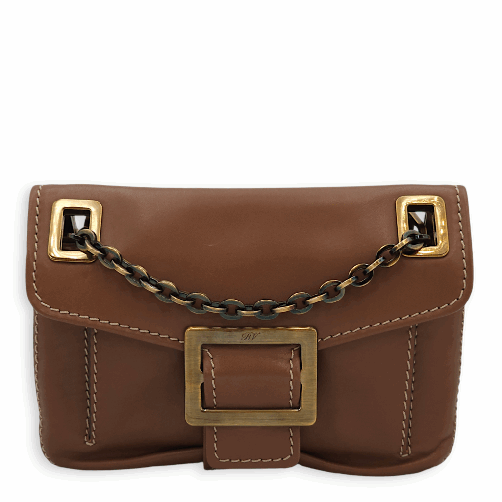 Metro Micro Brown Crossbody Bag in Calfskin, Gold hardware