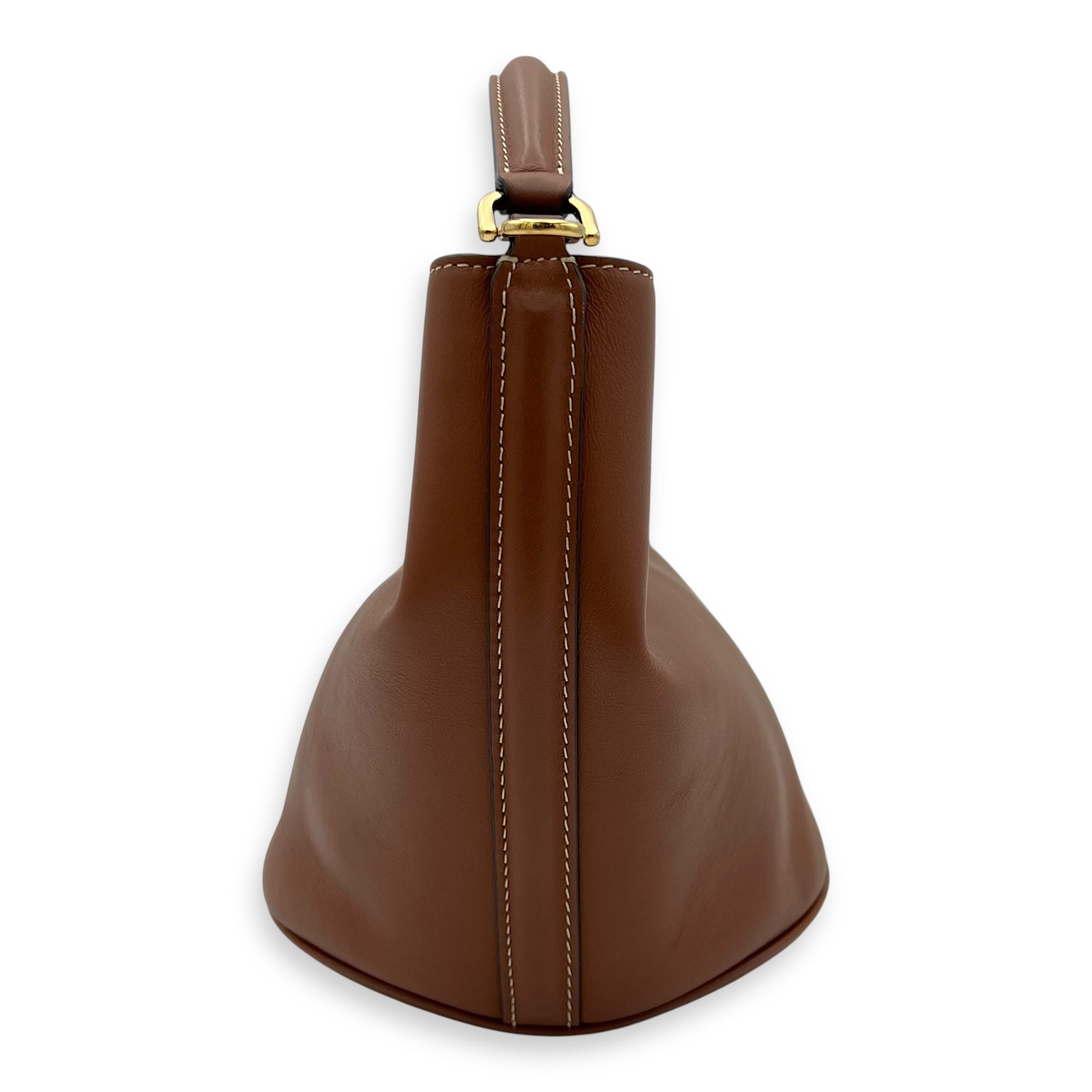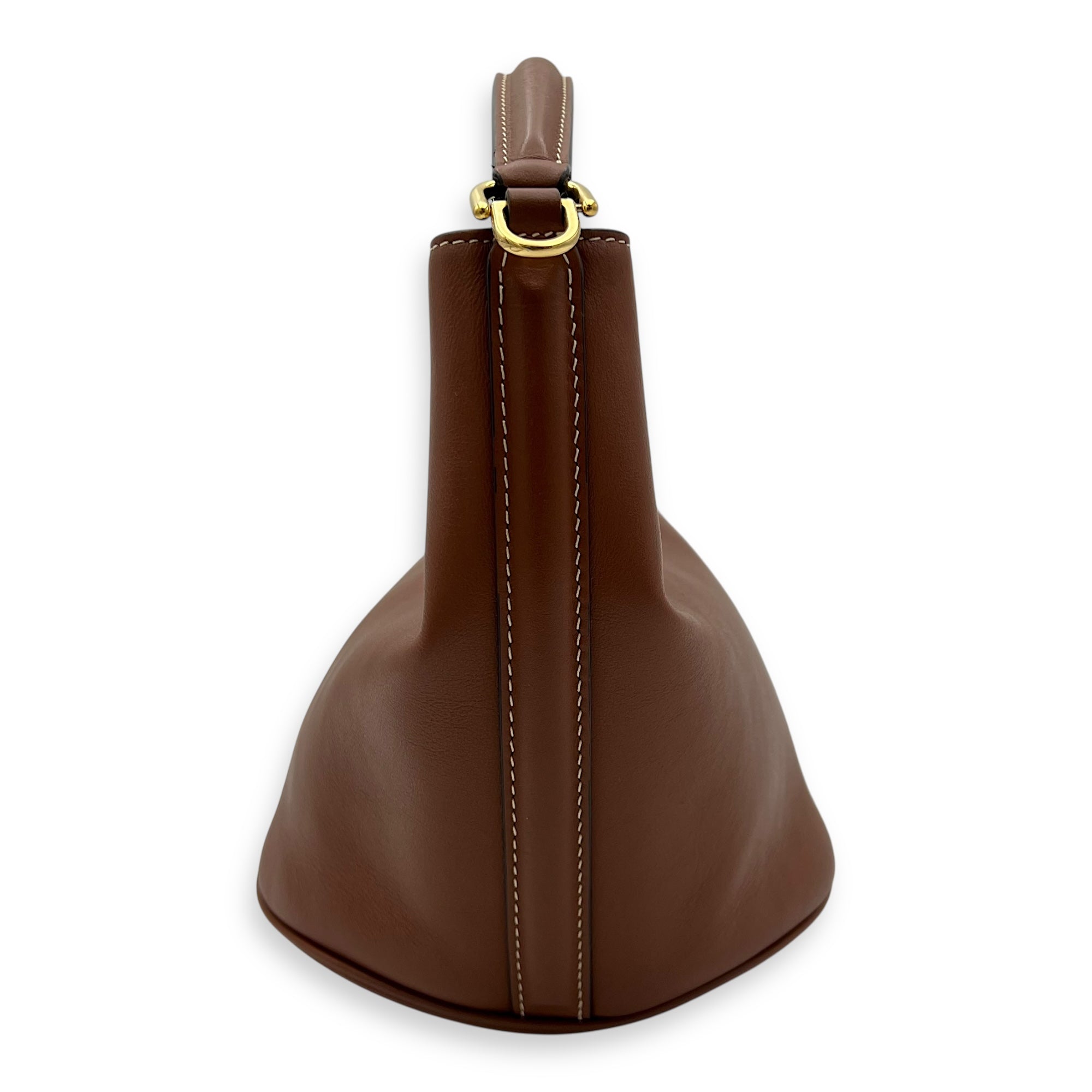 16 Teen Brown Bucket Bag in Calfskin, Gold hardware