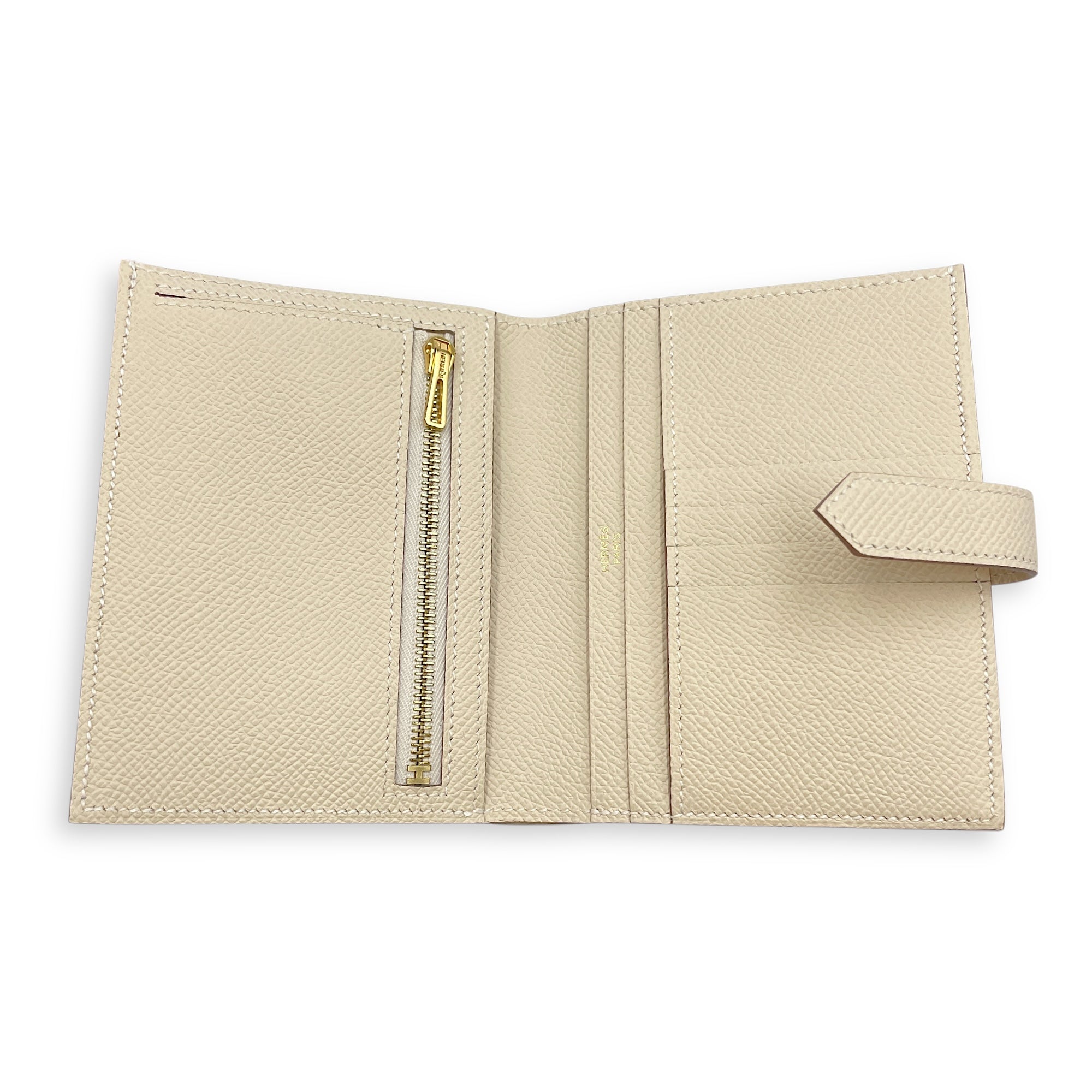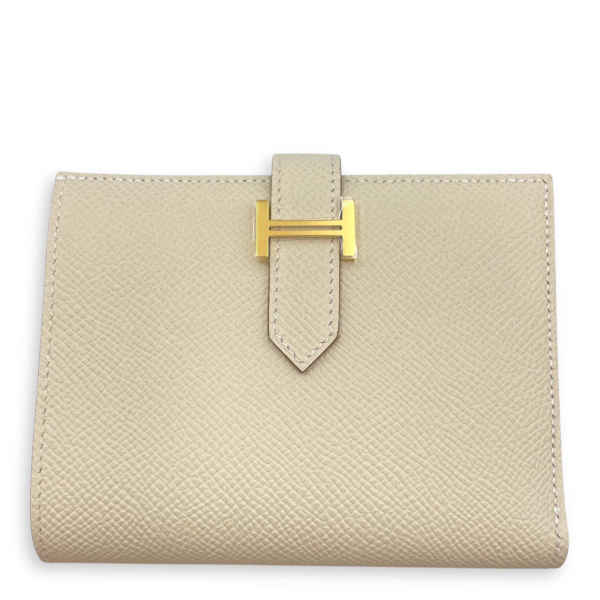 Bearn Compact Craie Wallet in Epsom, Gold hardware