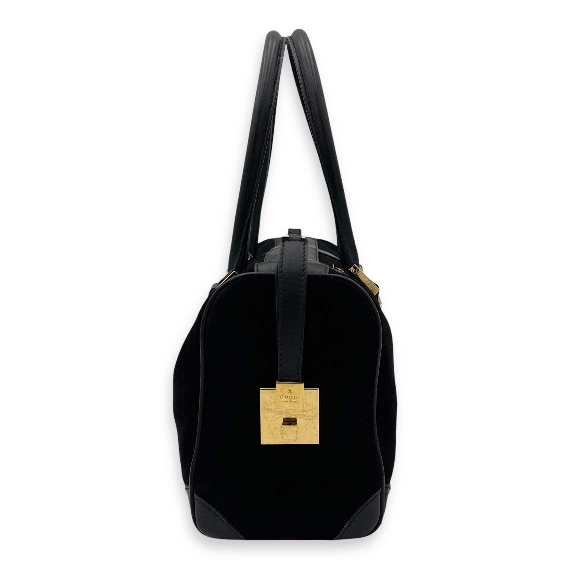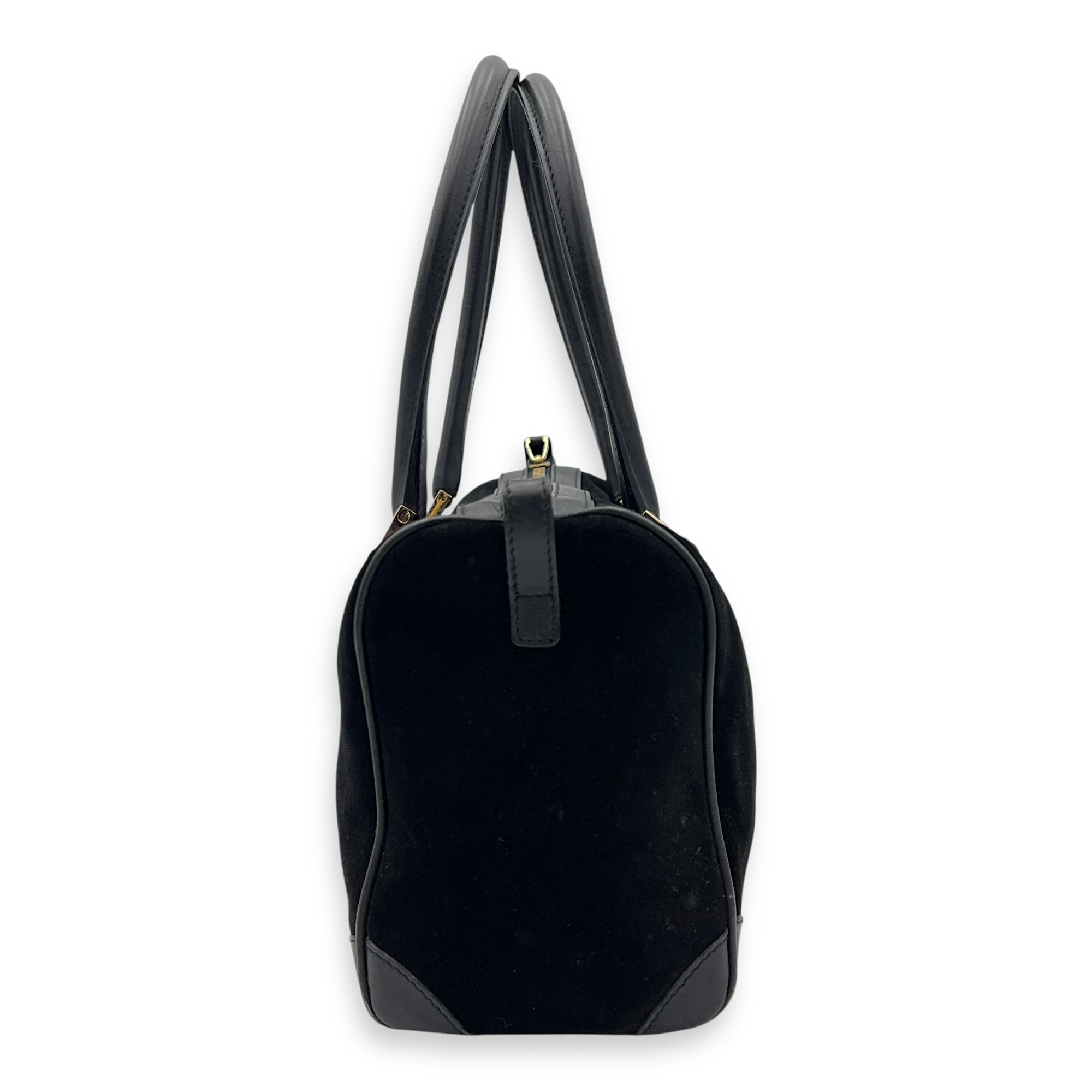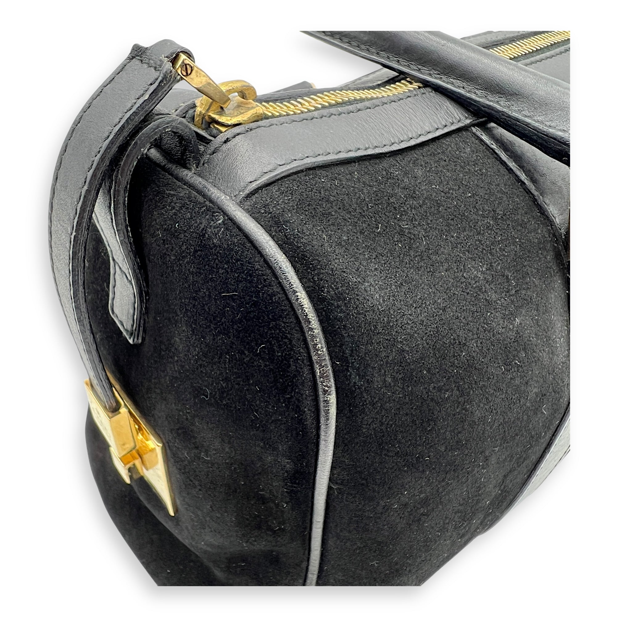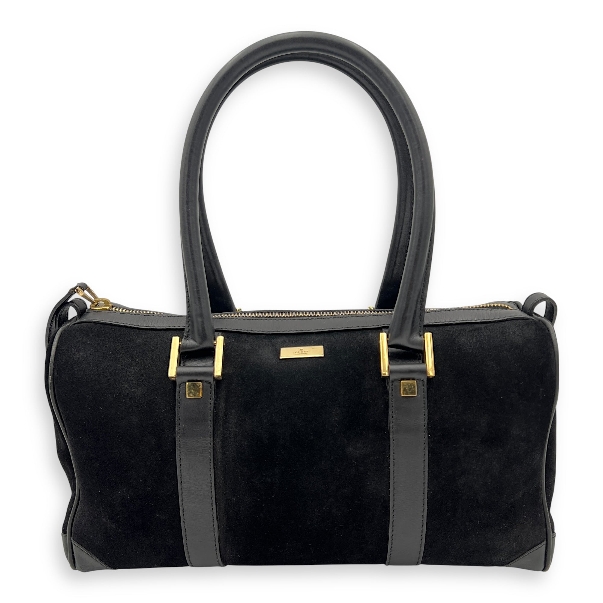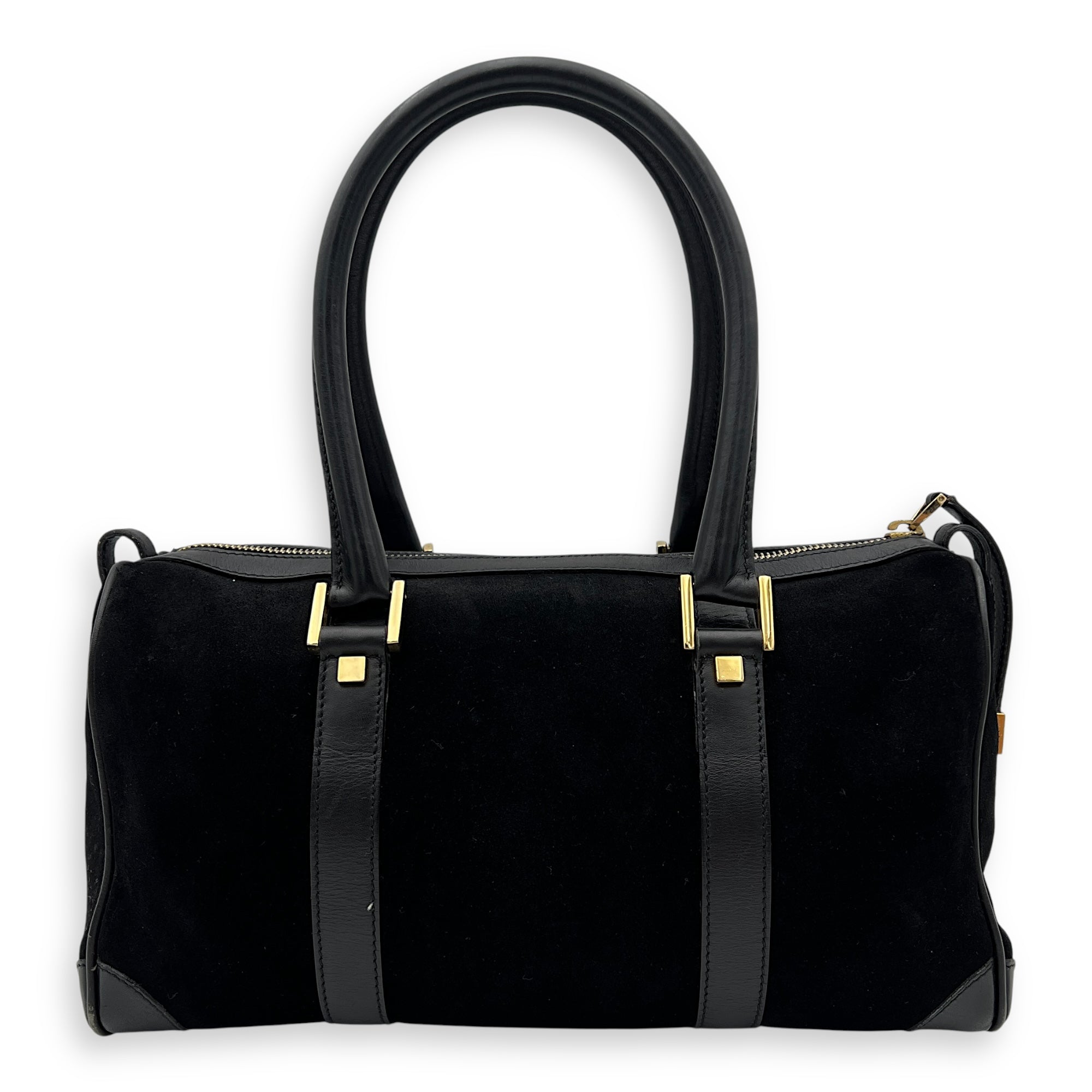 Boston Top Handle Bag Black in Suede Leather, Gold hardware