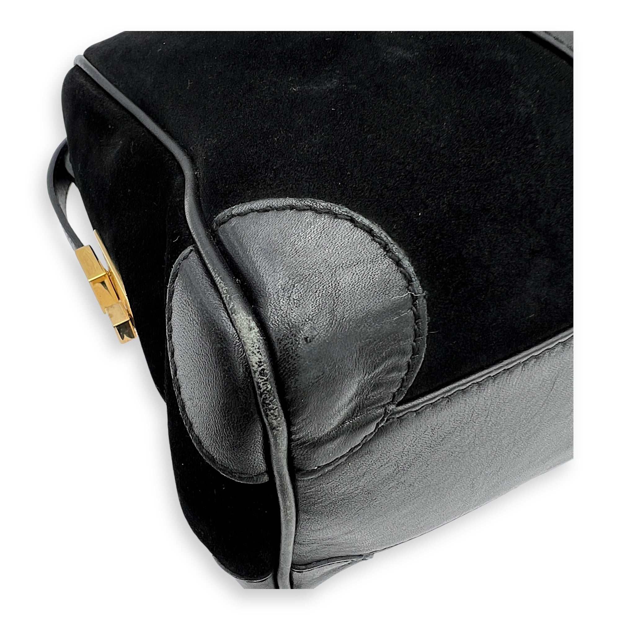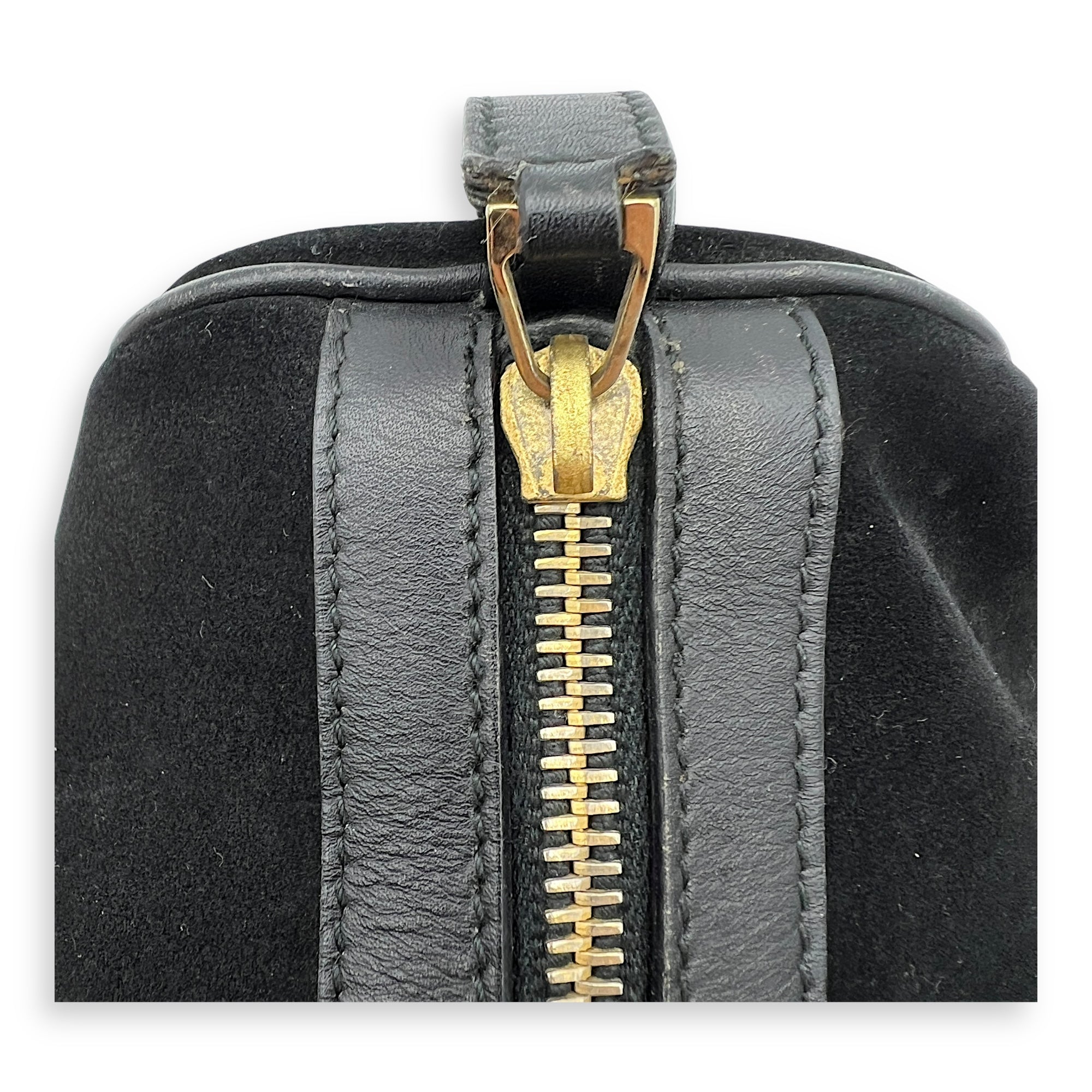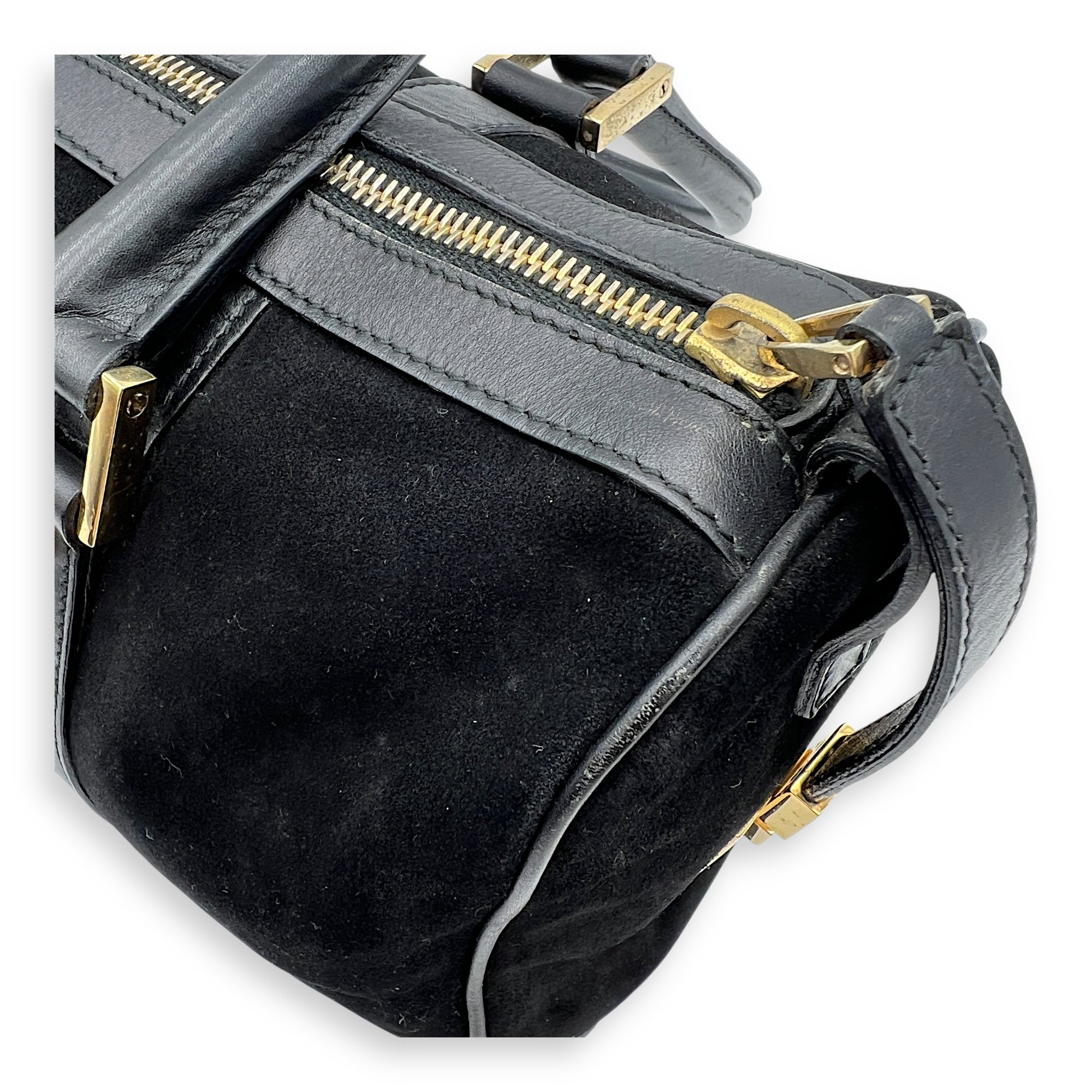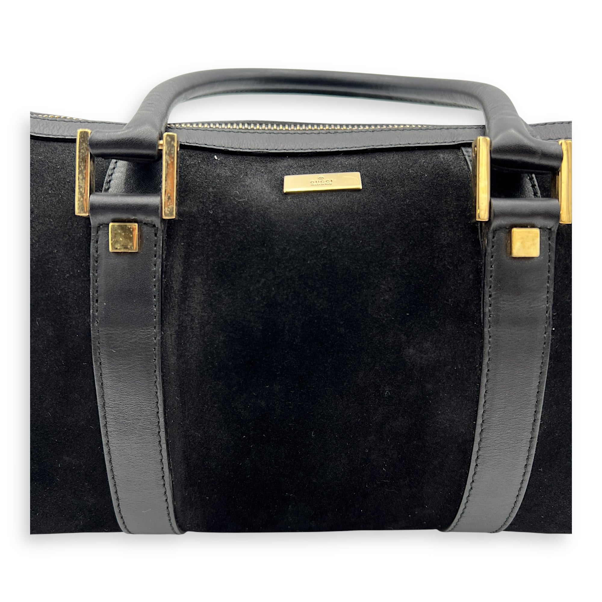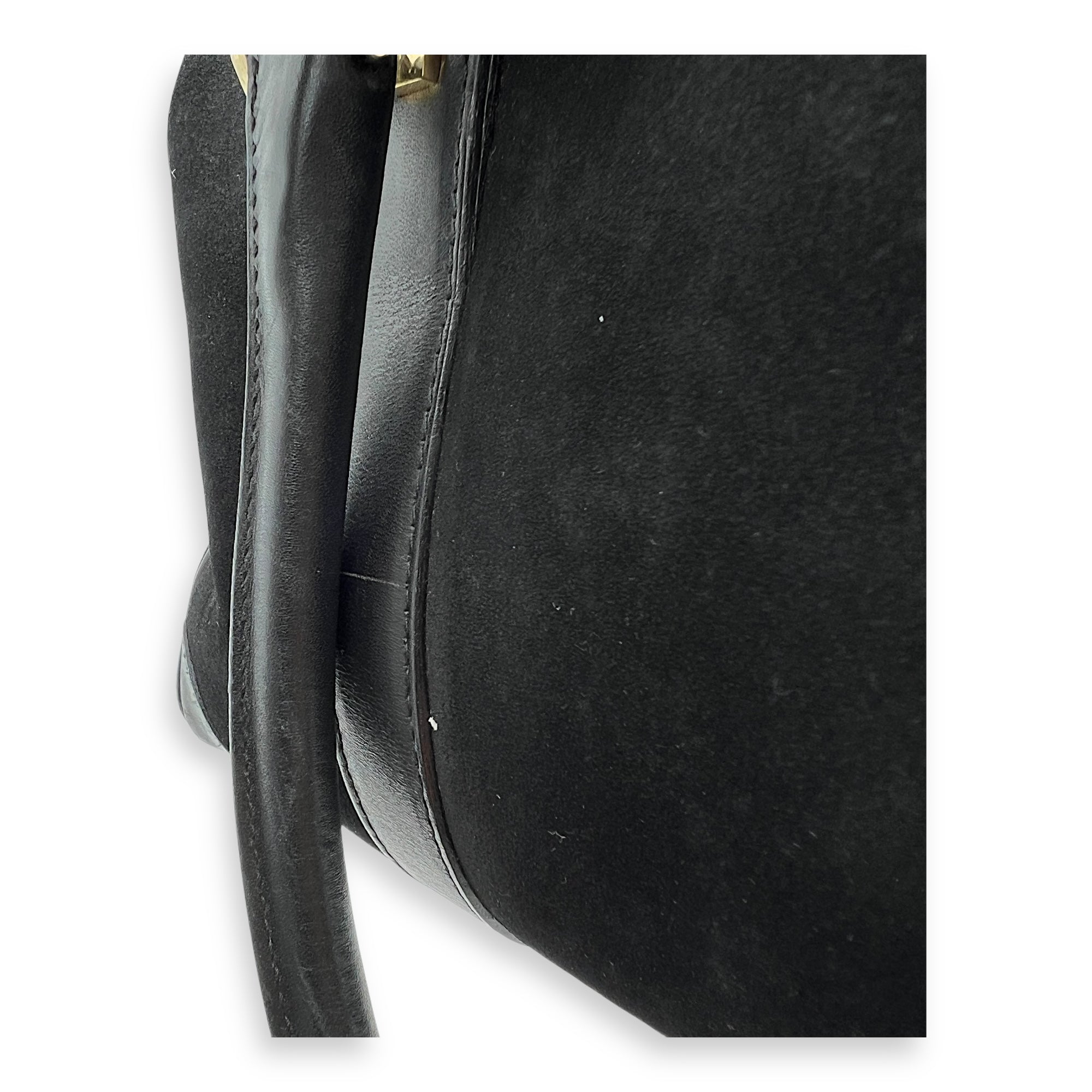 Boston Top Handle Bag Black in Suede Leather, Gold hardware