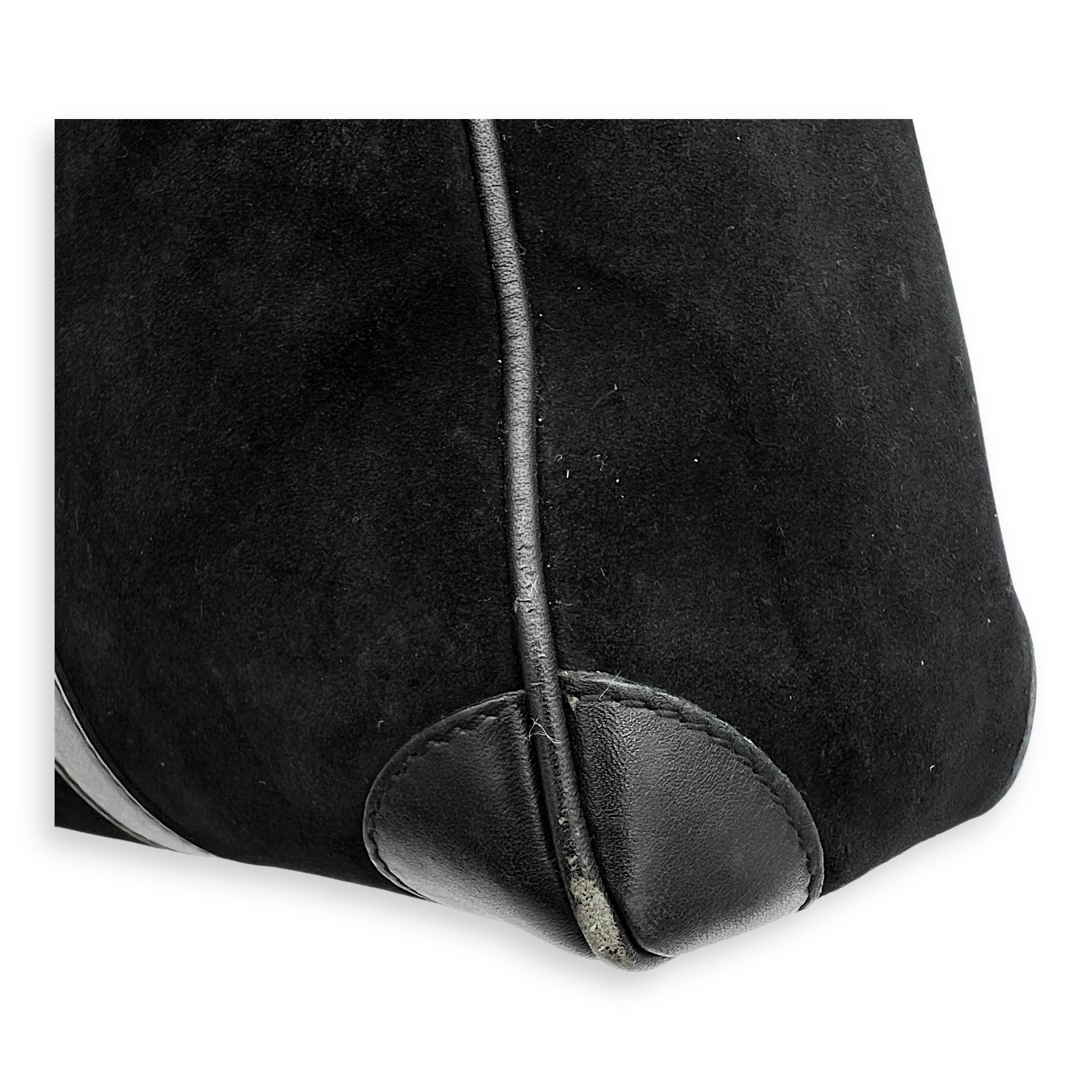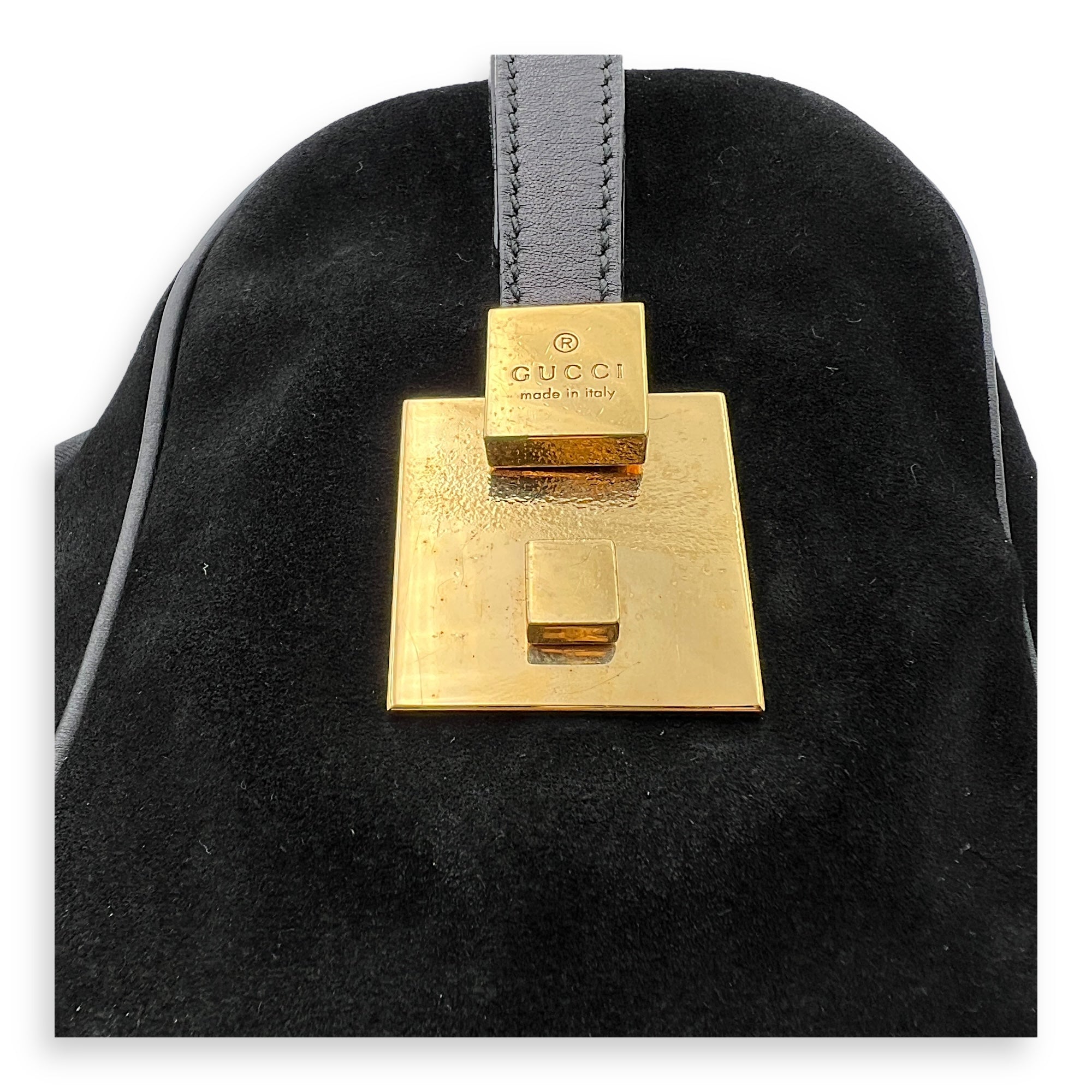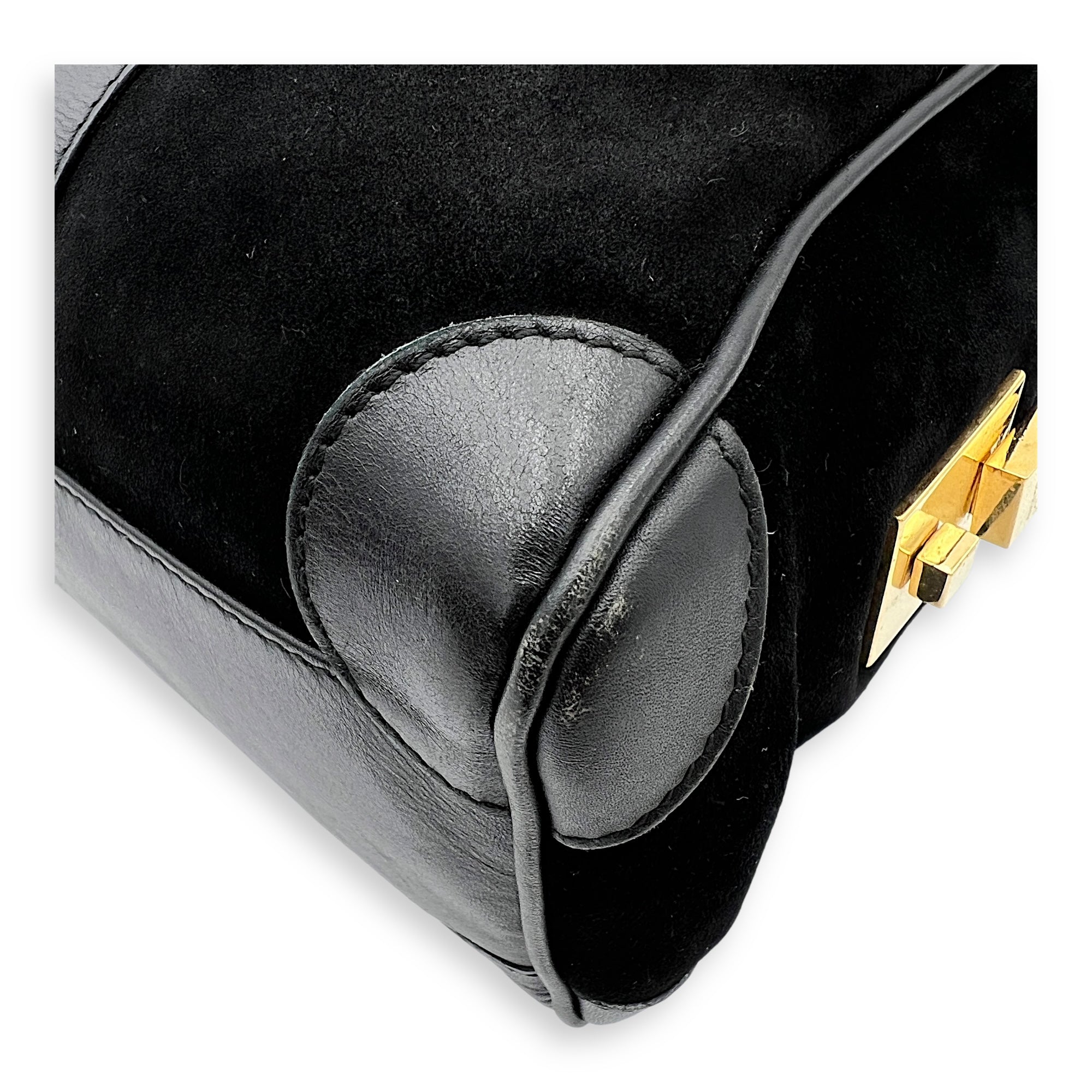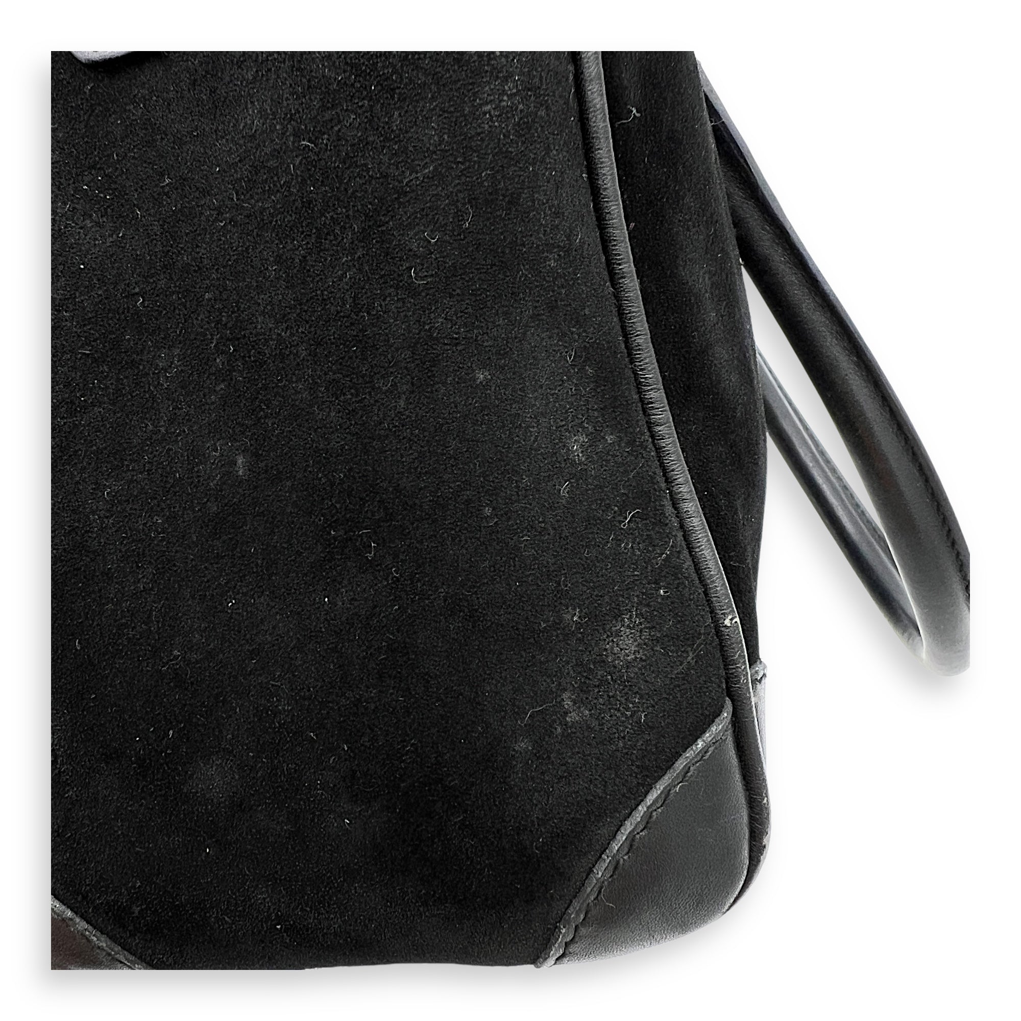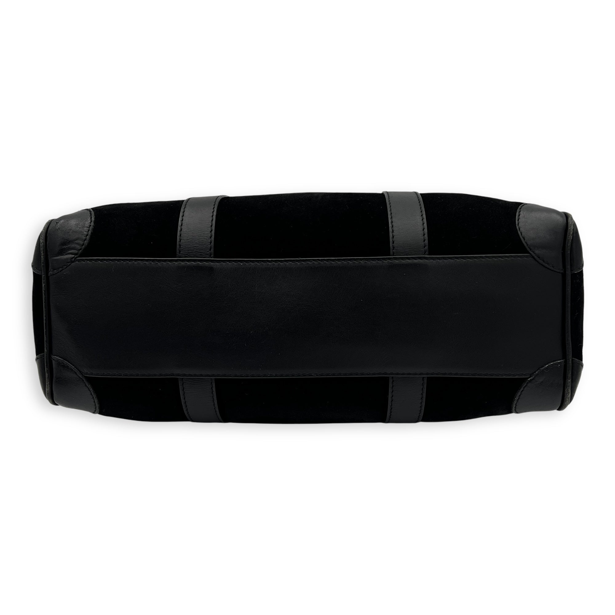 Boston Top Handle Bag Black in Suede Leather, Gold hardware