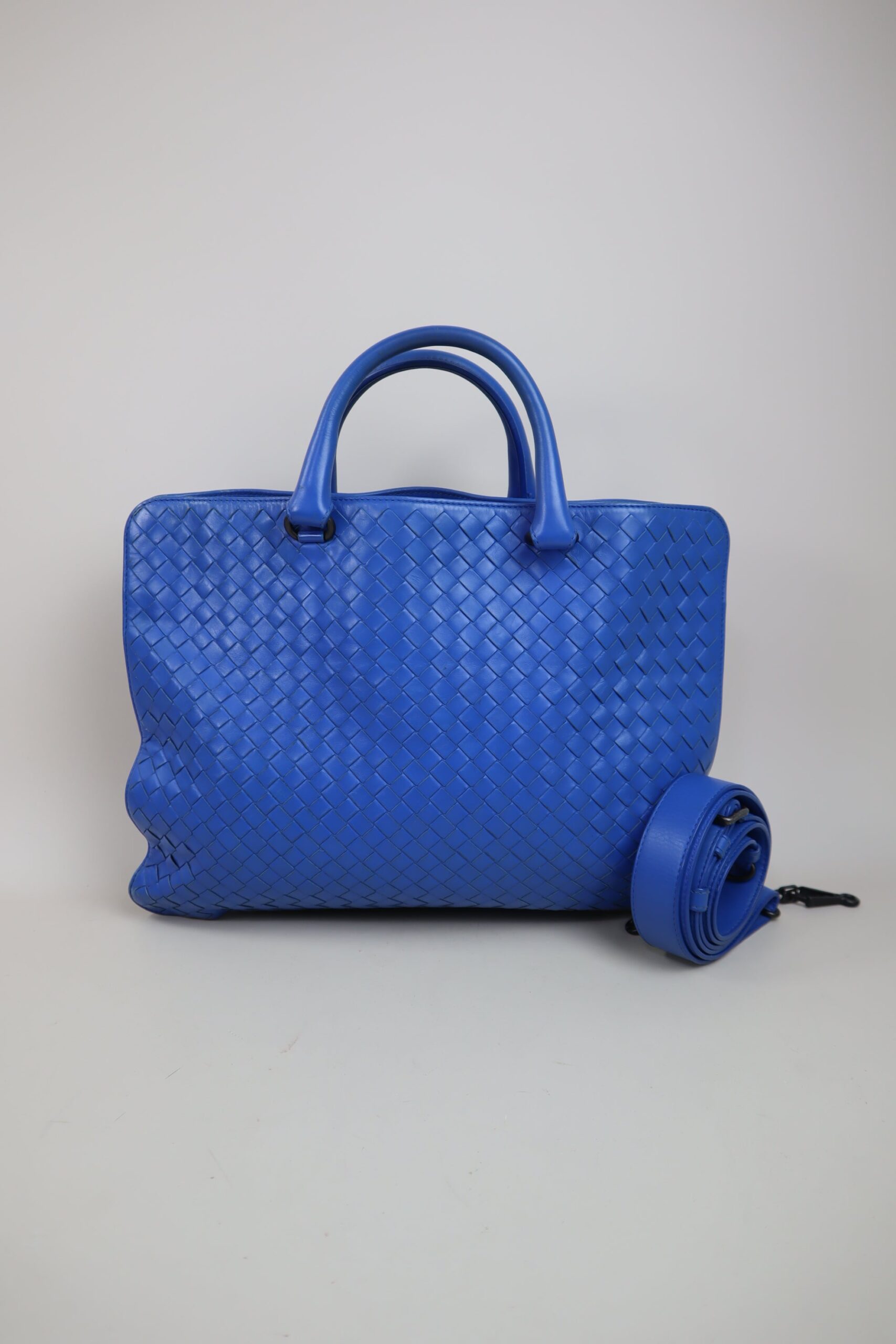 Bottega Veneta Blue Briefcase Intrecciato Tote Bag