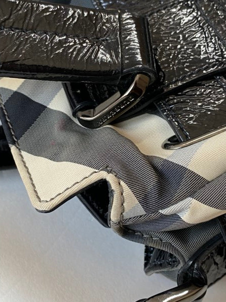 • Material: Beige Beat Check Nylon and Brown Patent Leather