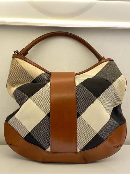 • Material: Mega Check Canvas with Camel Leather
