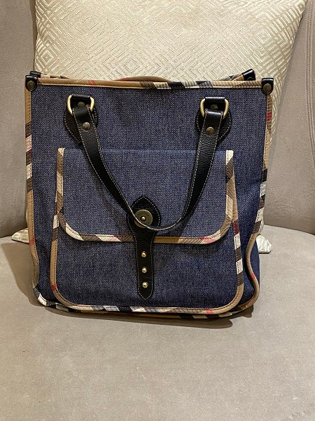 • Material: Blue Denim with House Check Canvas Trim and Black Leather Trim