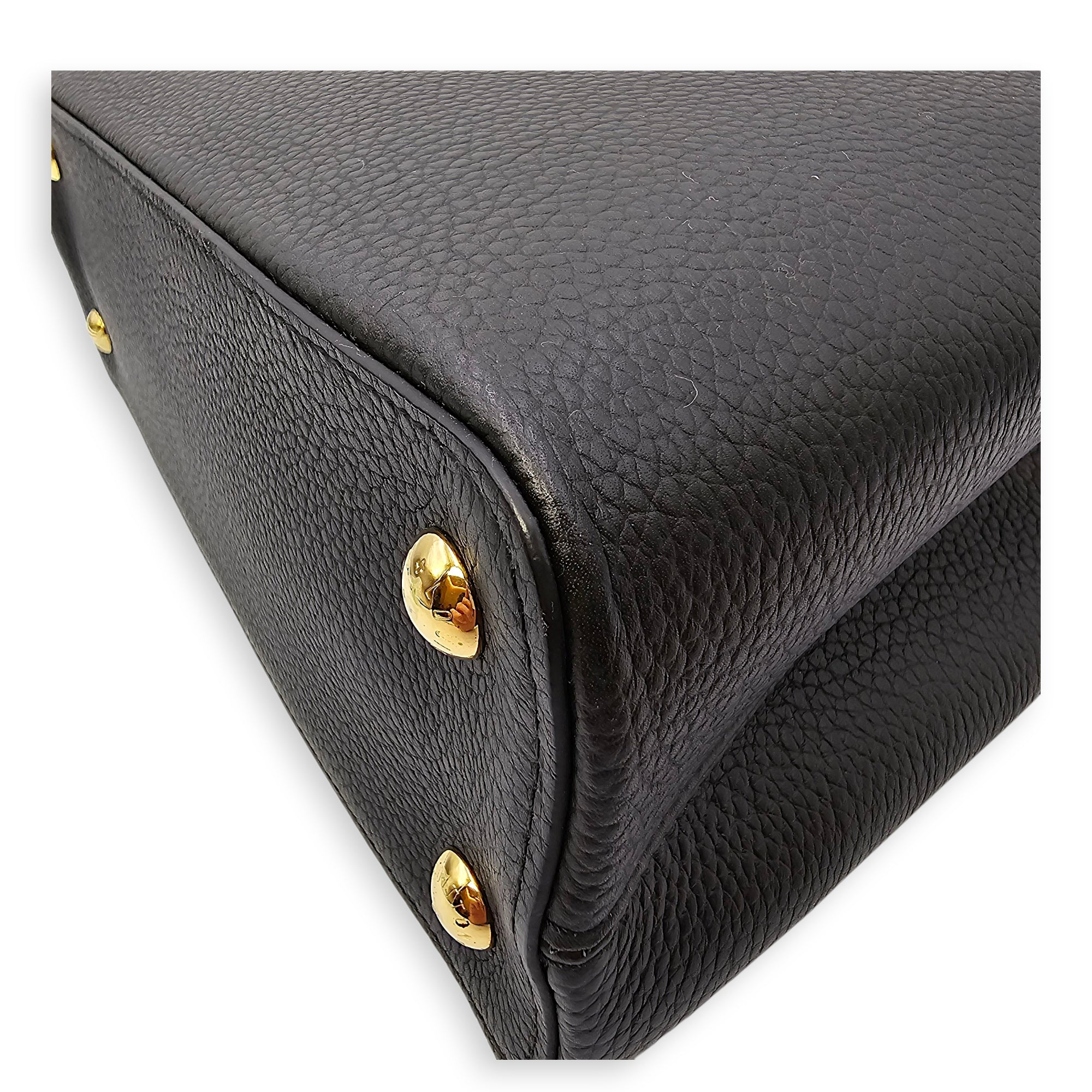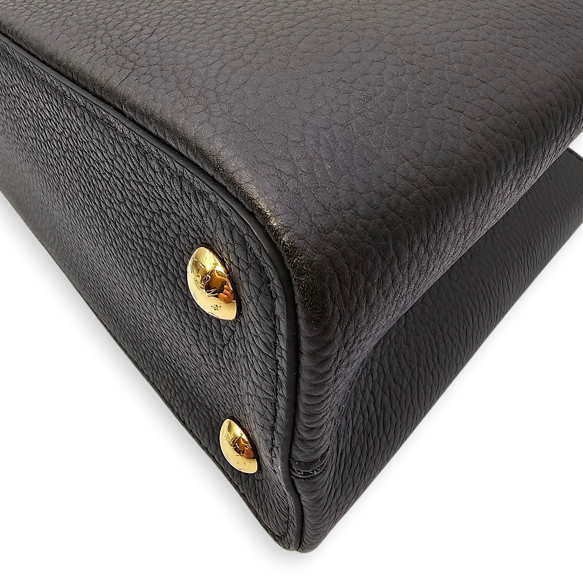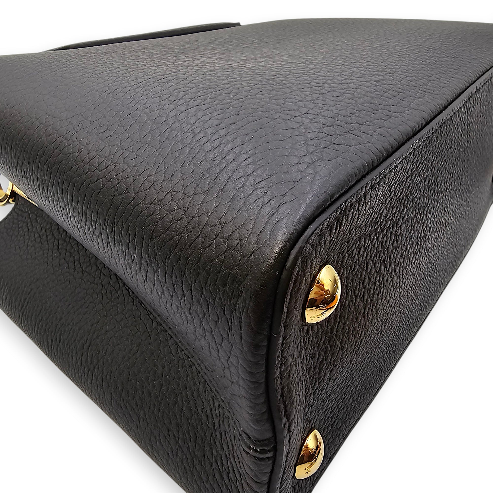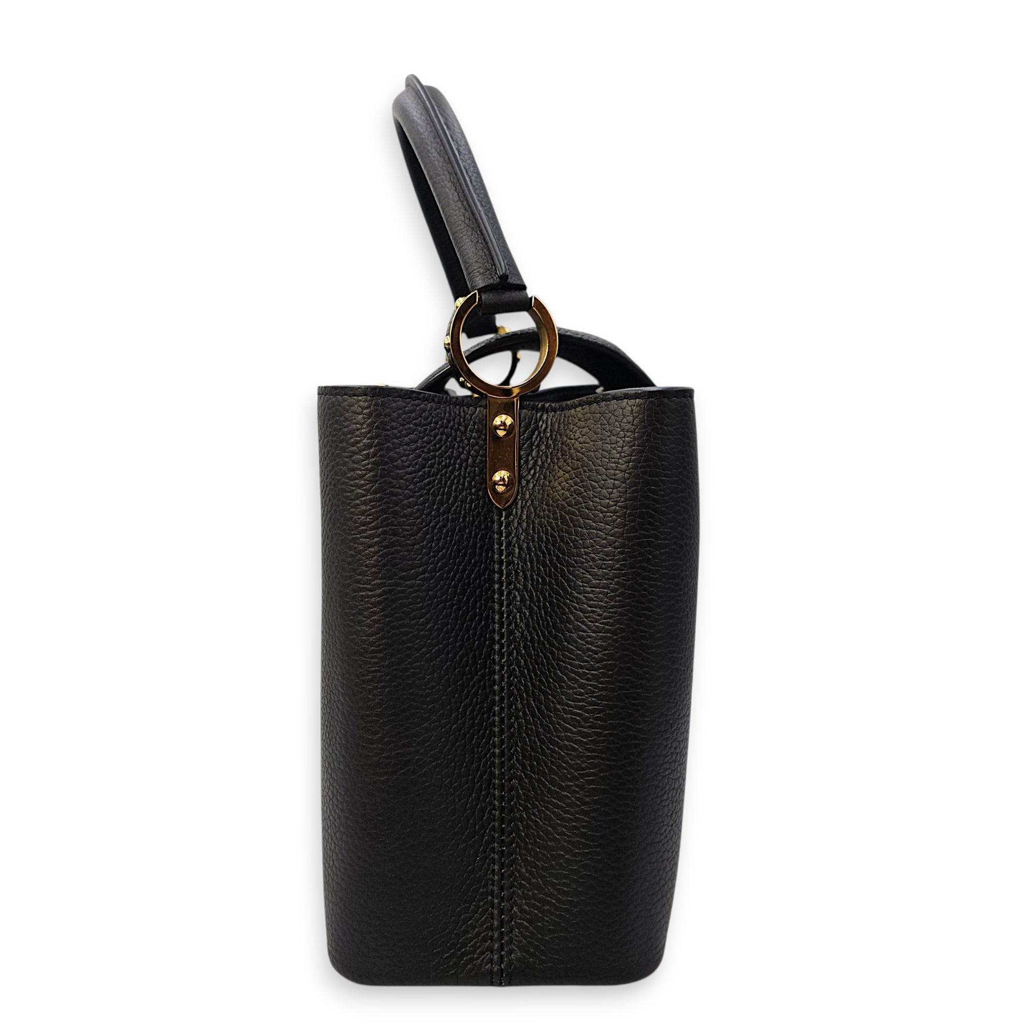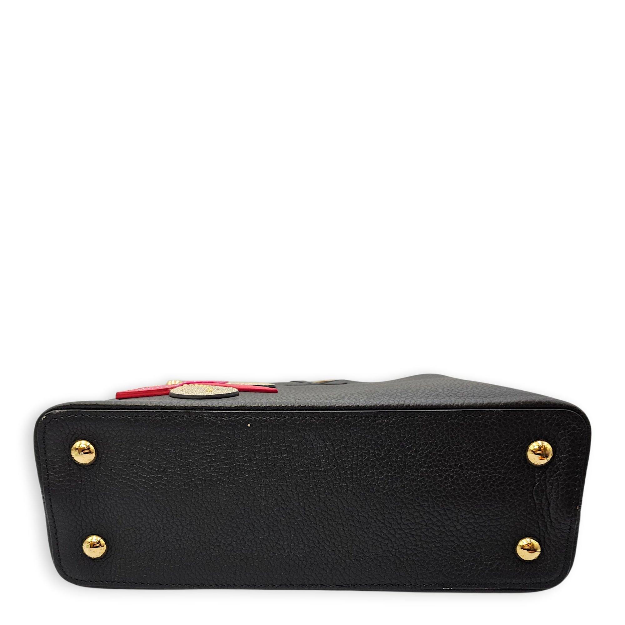 Capucines Iris Blossom PM Black Top Handle Bag in Calfskin, Gold hardware