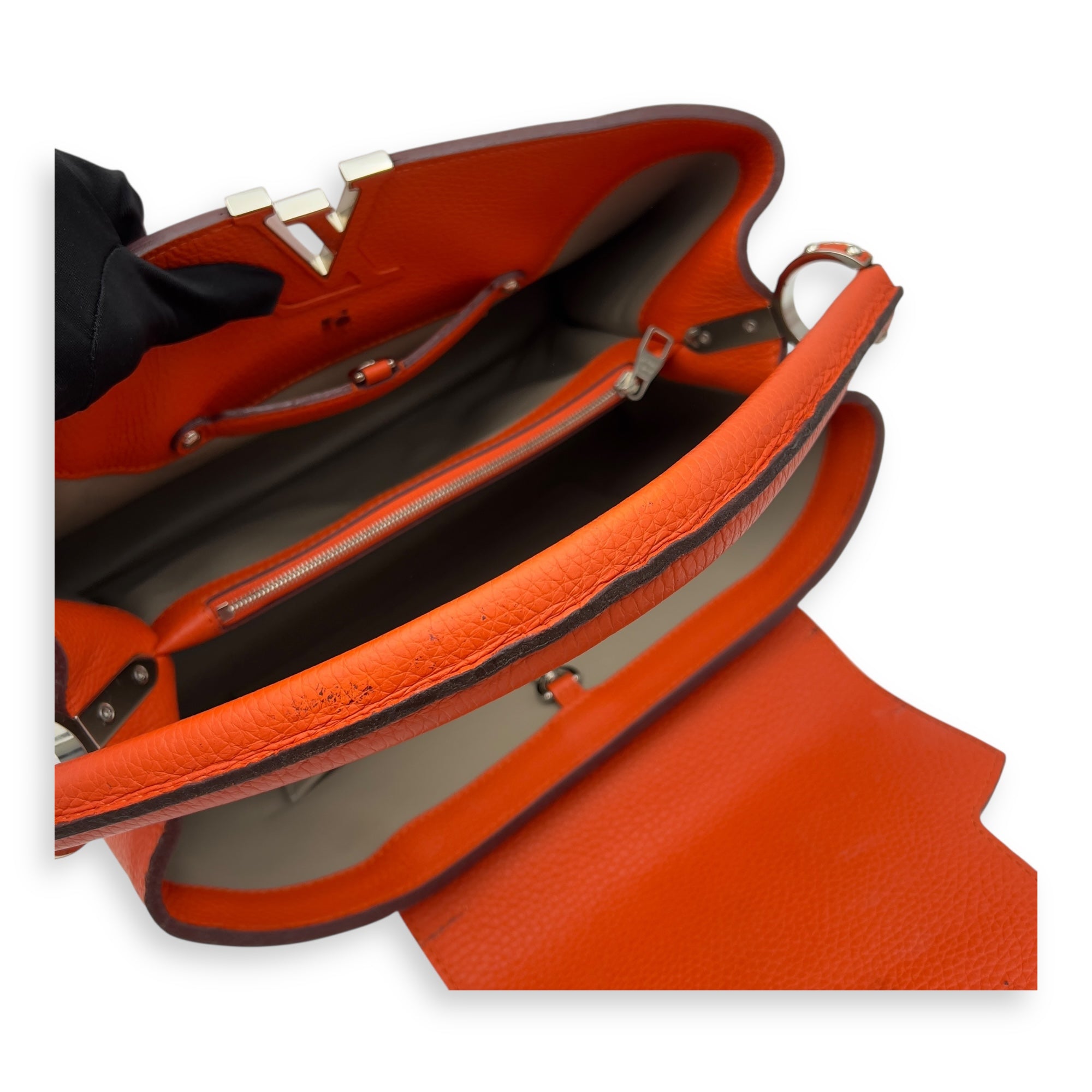 Capucines MM Clementine Top Handle Bag in Taurillon Leather, Light Gold hardware