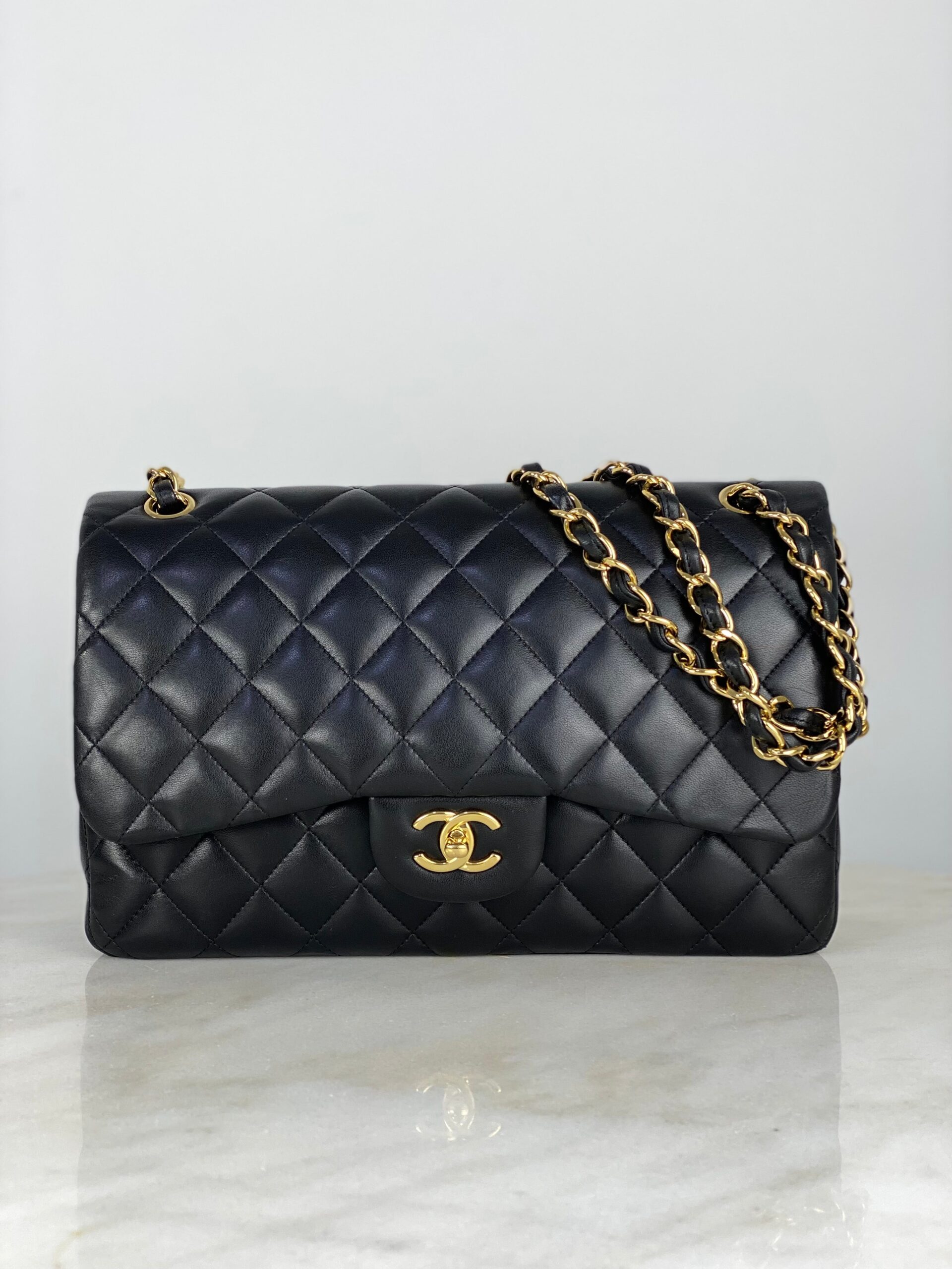 Chanel Black Double Flap Jumbo Shoulder Bag