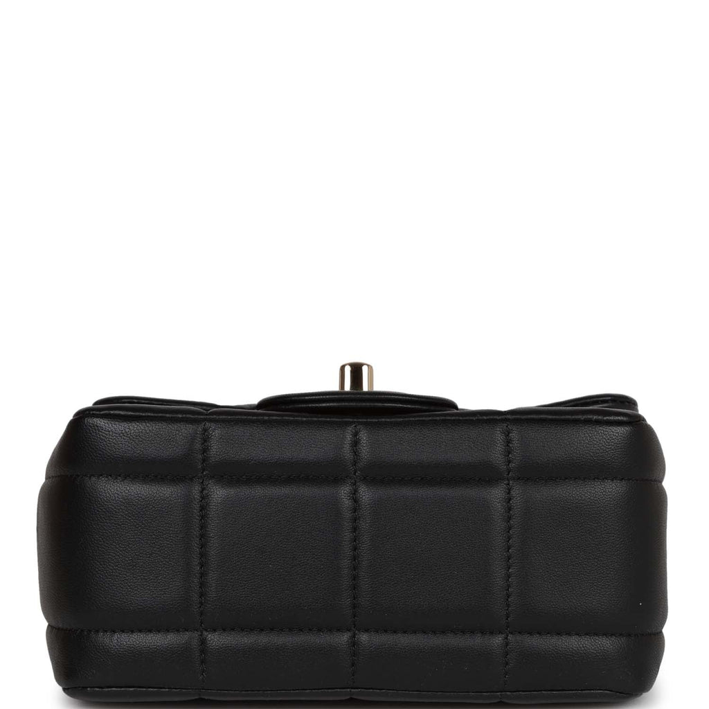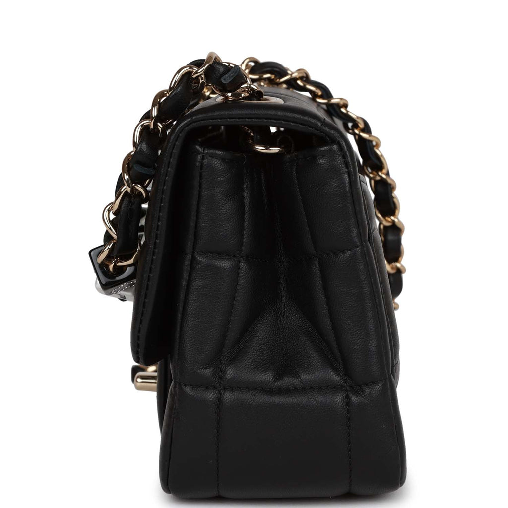 Chanel Monaco Mini Square Flap Bag Black Lambskin Light Gold Hardware Shop for an authentic Chanel Monaco Mini Square Flap Bag Black Lambskin with Light Gold Hardware in new and never worn condition at Madison Avenue Couture.