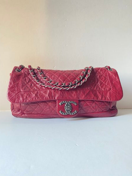 Chanel Red Crinkled Shoulder Bag