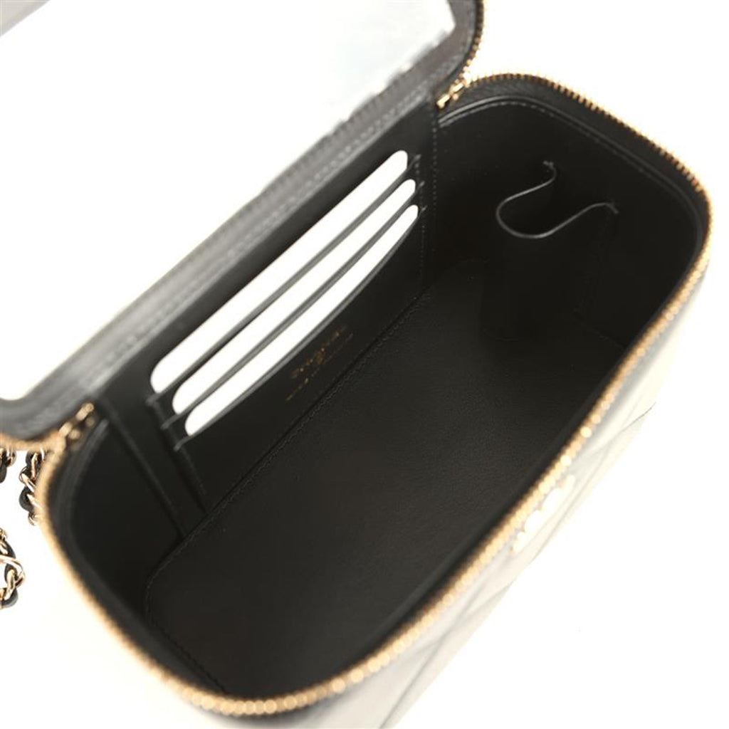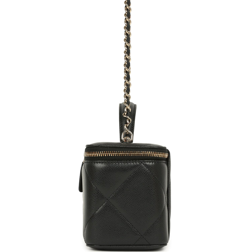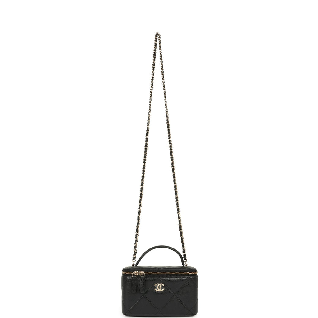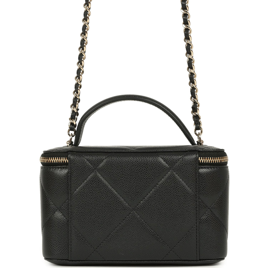 Chanel Small Top Handle Vanity Case Black Caviar Light Gold Hardware