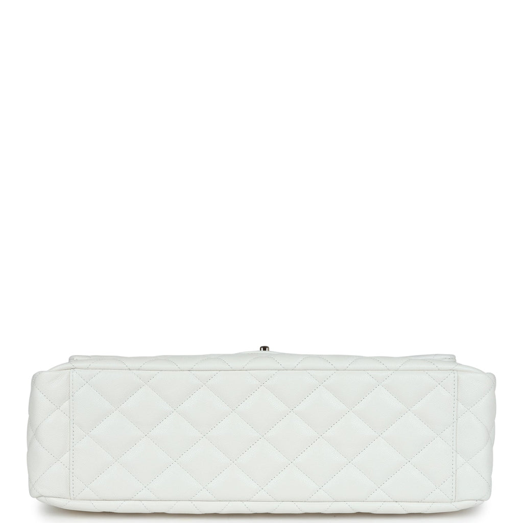 Chanel XXL Classic Single Flap Bag White Shiny Caviar Light Gold Hardware Shop for an authentic Chanel XXL Flap Bag in White shiny caviar leather with light gold tone hardware in new or never worn condition at Madison Avenue Couture