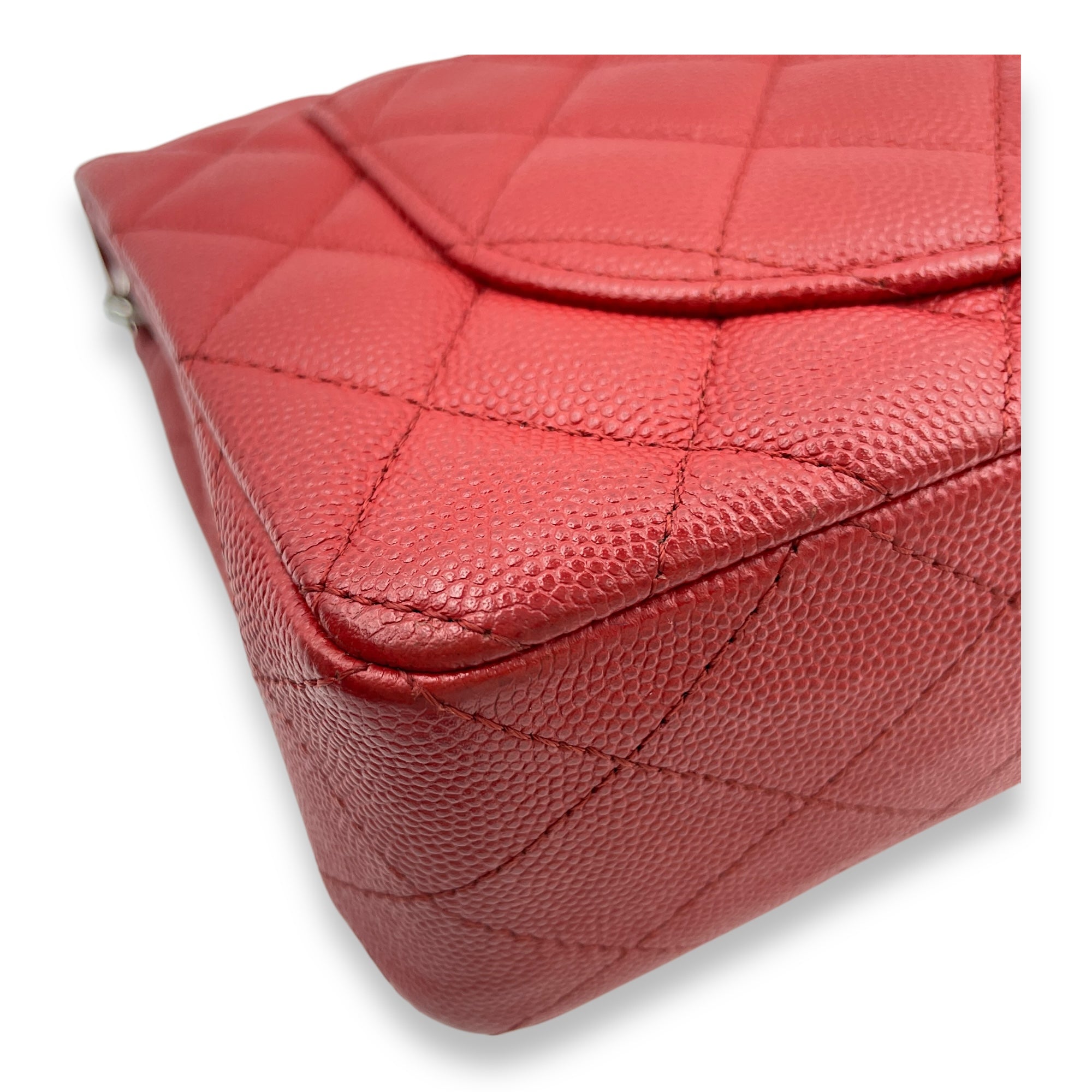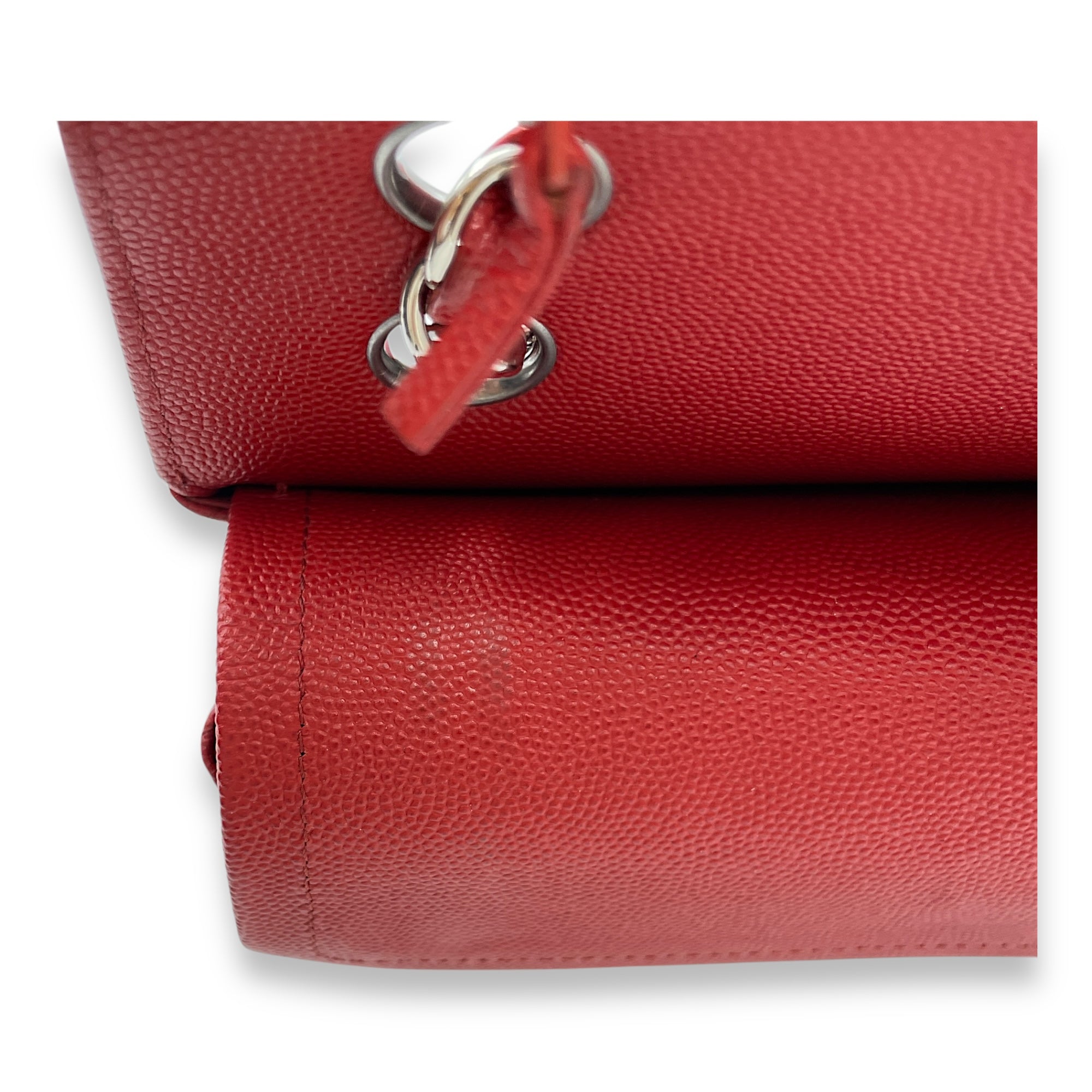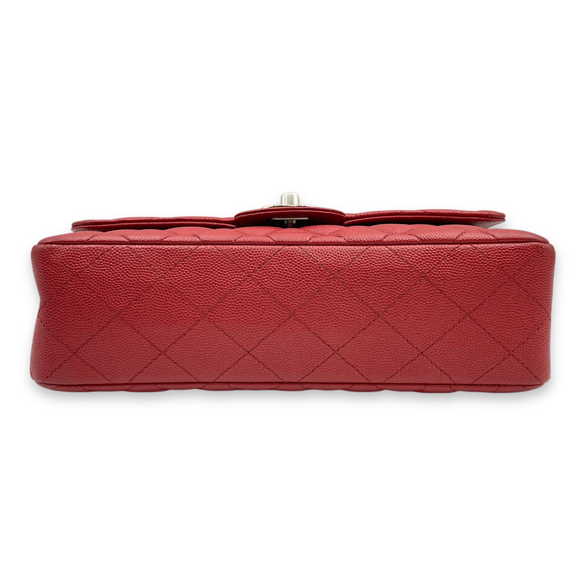 Classic Double Flap Small Red Shoulder Bag in Caviar Leather, Silver hardware