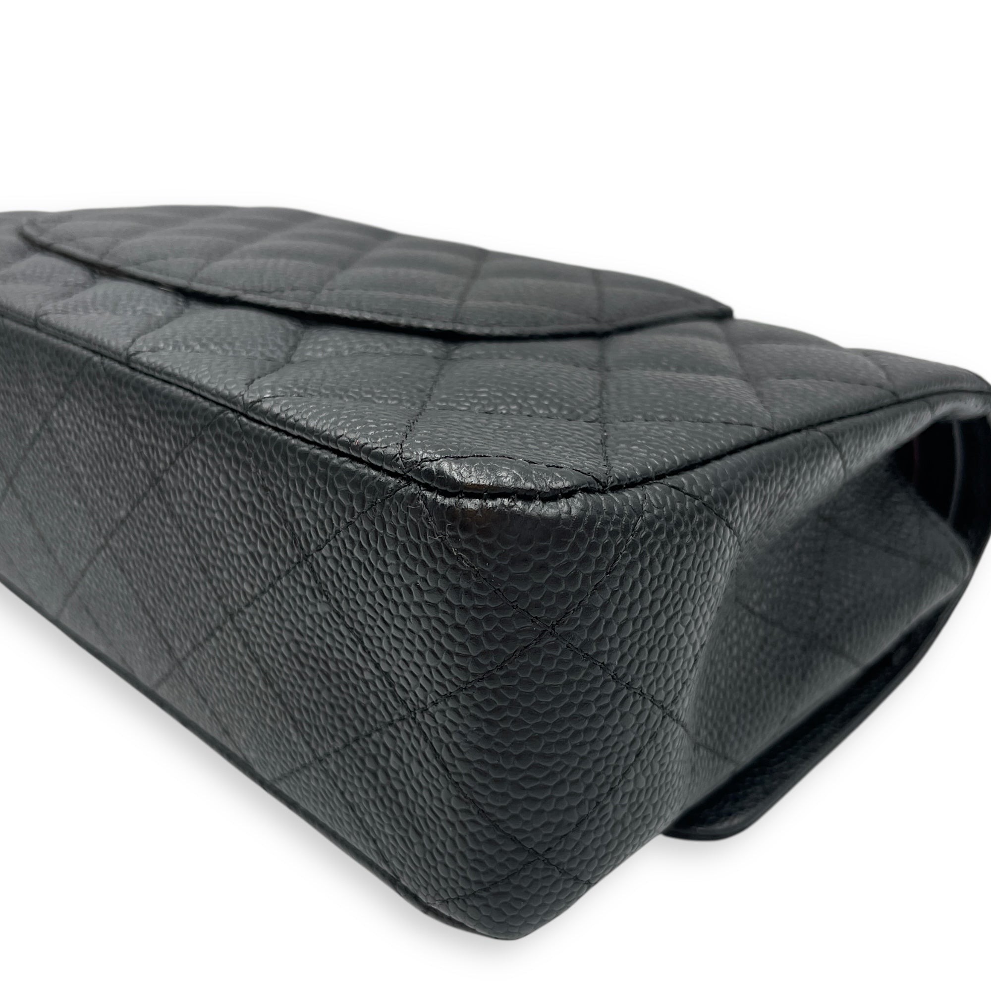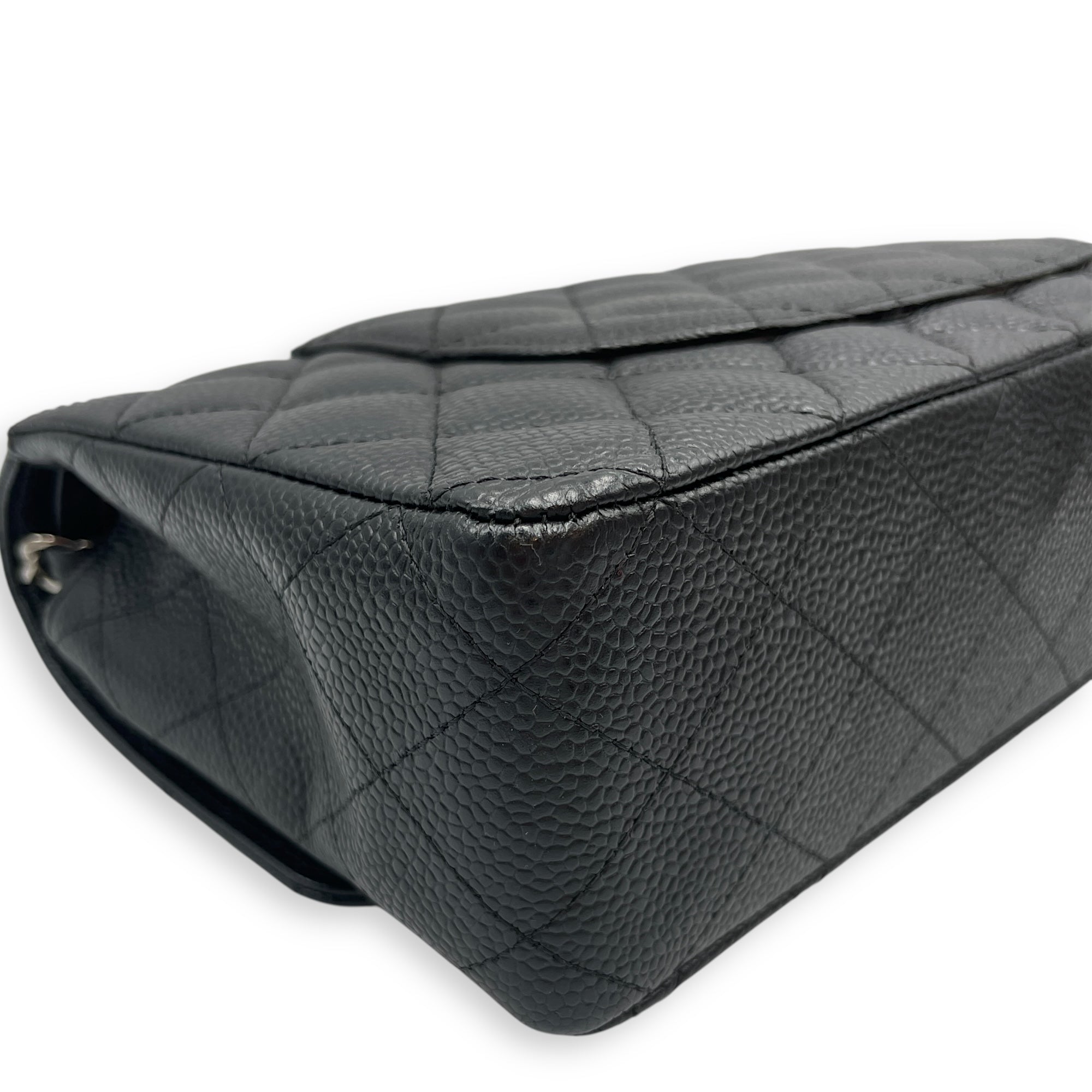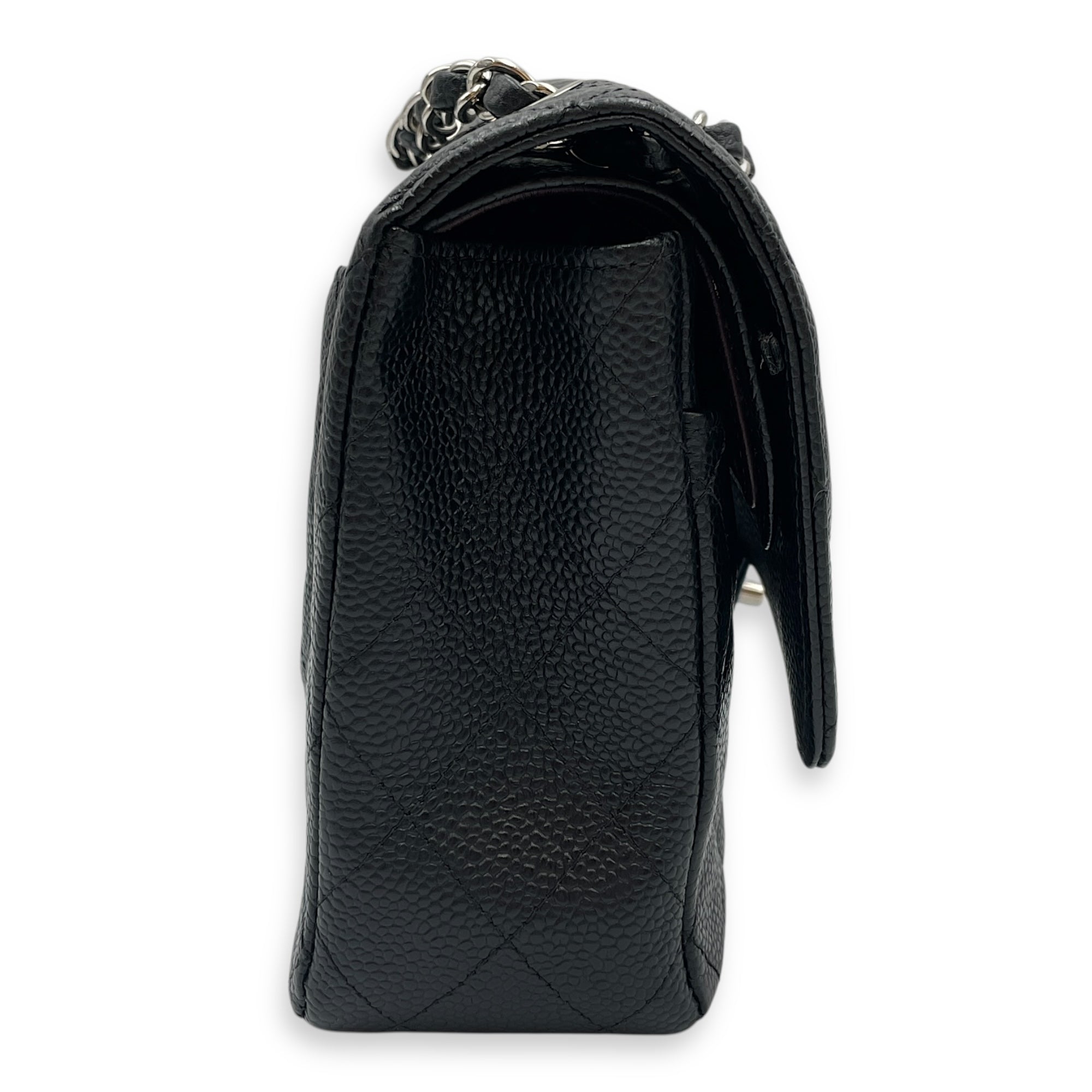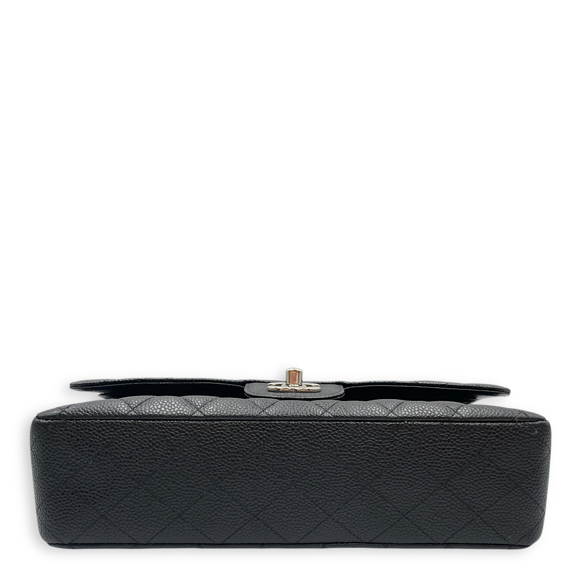 Classic Medium Black Double Flap Bag in Caviar Leather, Silver hardware