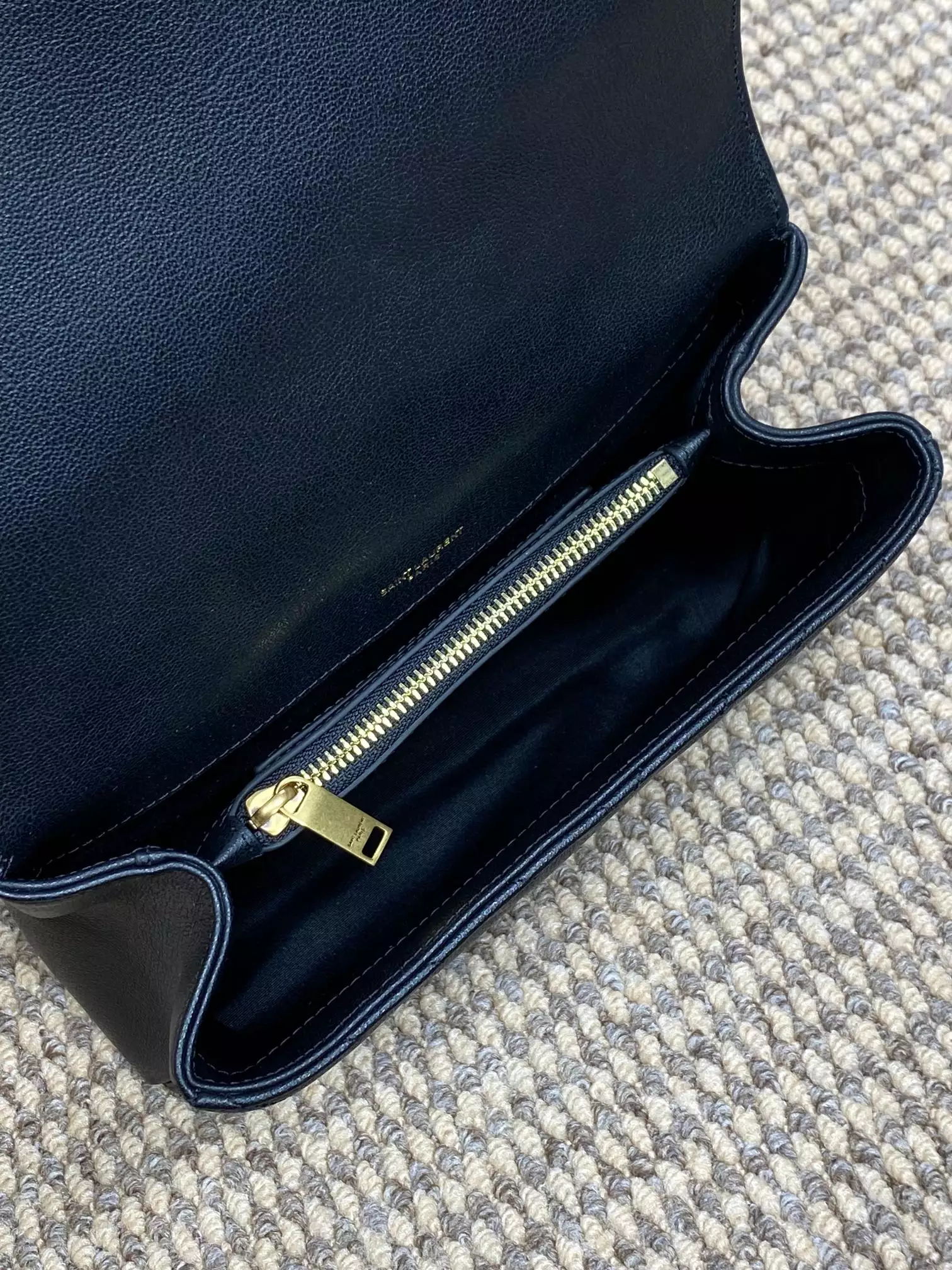 Black Quilted Leather, Medium Leather Bag, Saint Laurent Bag, Saint Laurent College