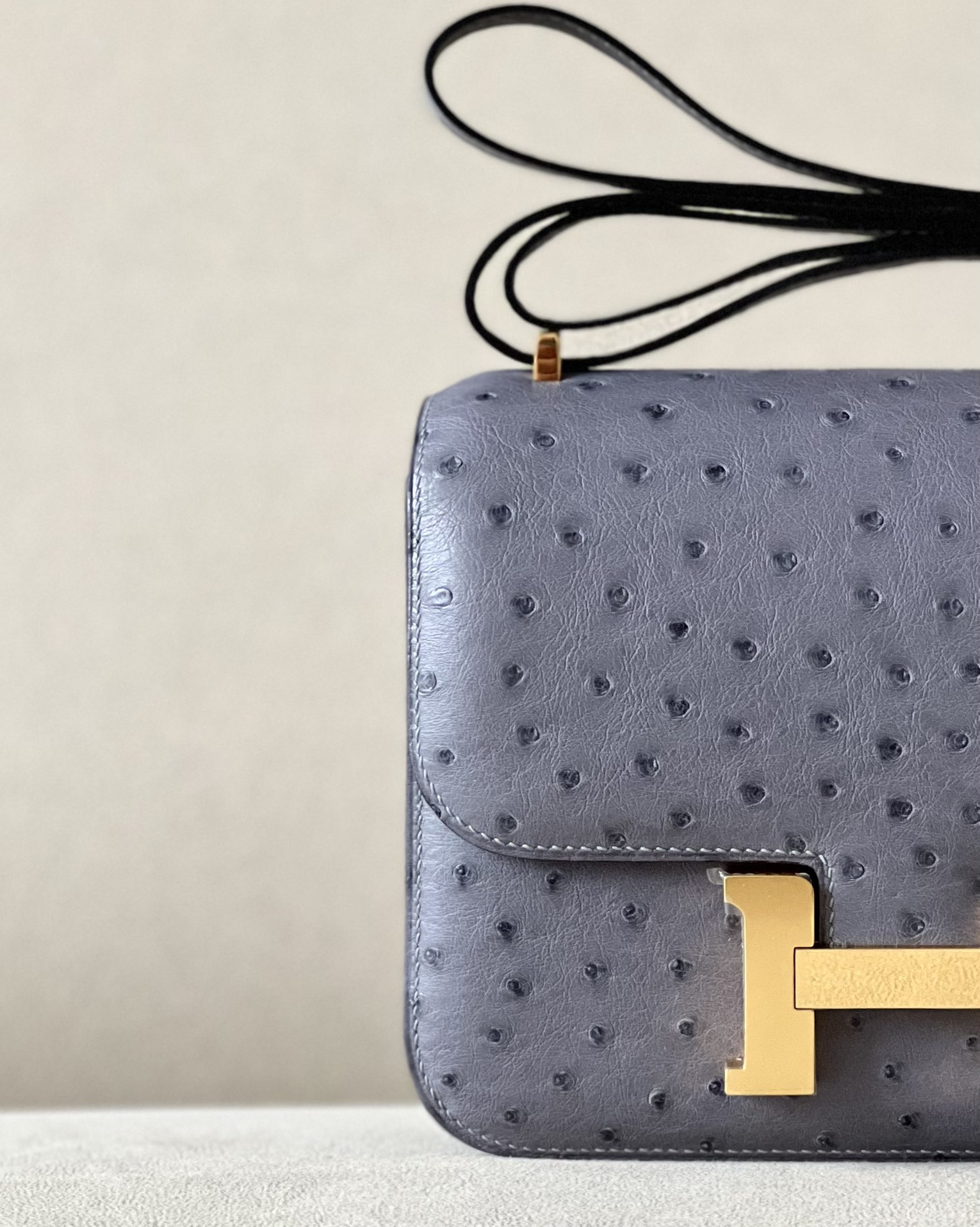 Be the first to review “Constance 19 Ostrich Gris Agate (82) Gold Hardware”