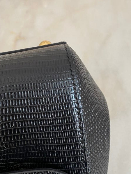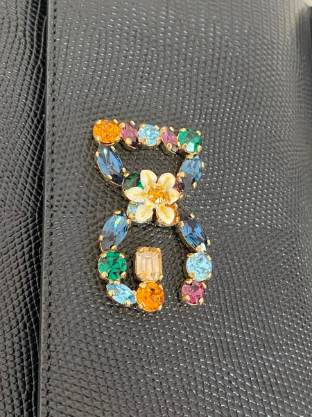 • Material: Black Iguana Print Leather with Crystals DG & Enamel Flower