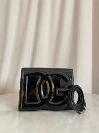Dolce & Gabbana Black Vernis DG Logo Crossbody Bag