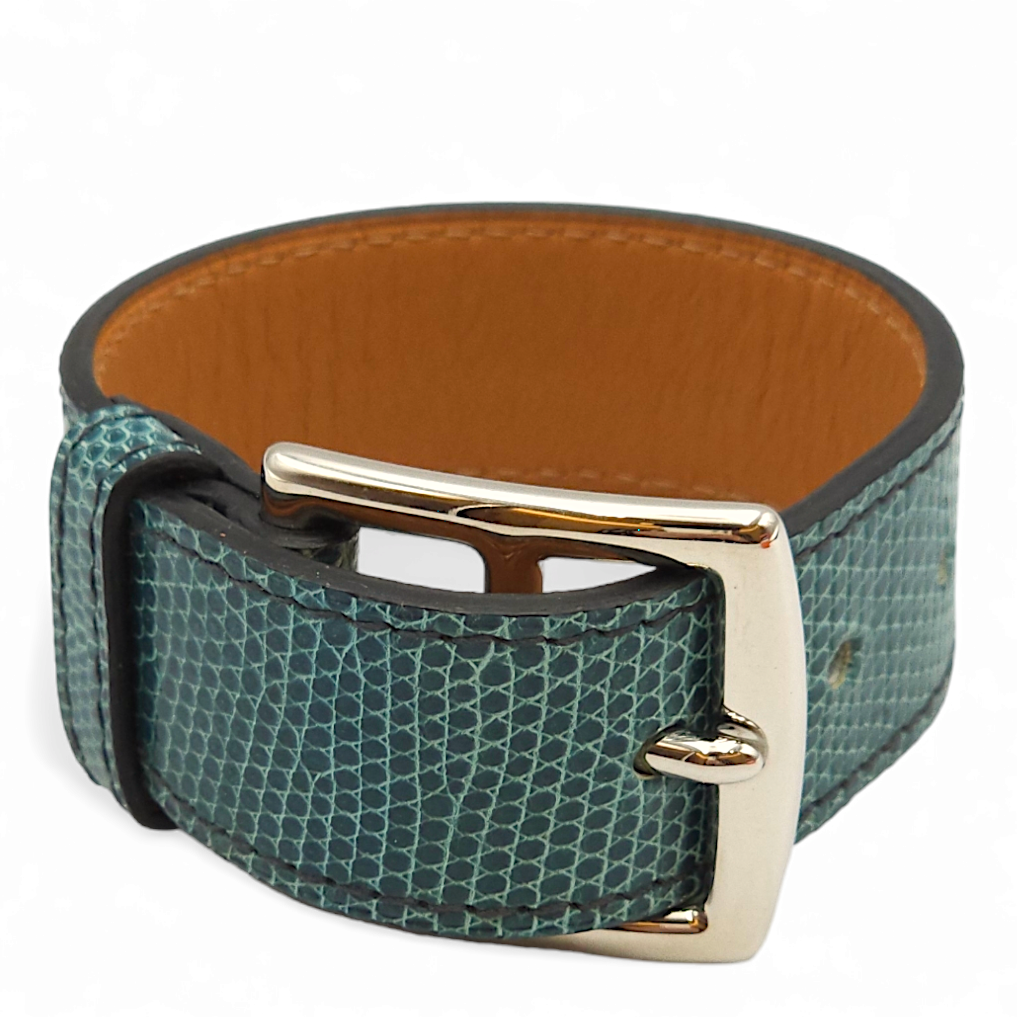 Etriviere 2 Blue Petrole Bracelet in Lizard, Palladium hardware