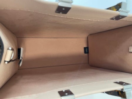 • Material: Beige Smooth Calf Leather with Stamped “FENDI ROMA” and  Tortoiseshell Effect Plexiglass Handles