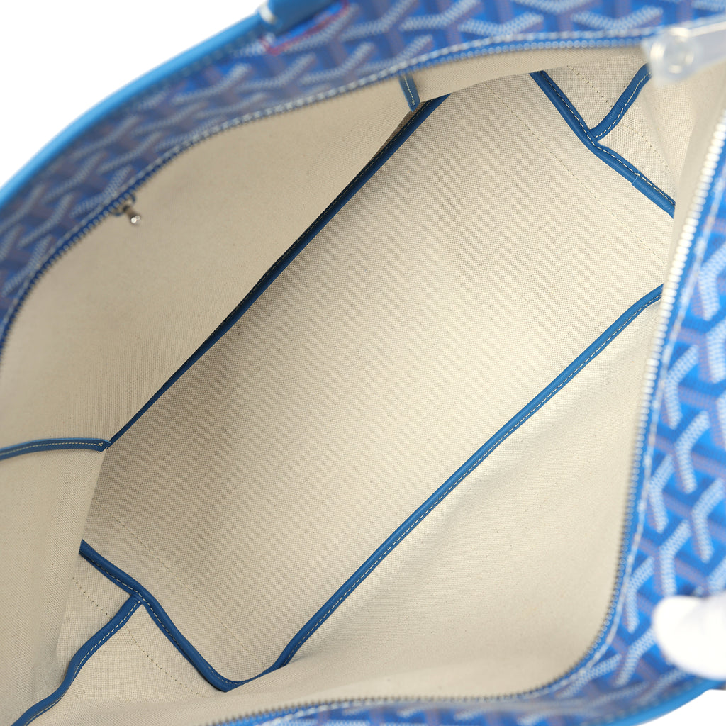 Goyard Goyardine Canvas Sky Blue Artois MM Tote Palladium Hardware Shop for an authentic Goyard Goyardine Artois MM in sky blue canvas and leather tote bag with palladium hardware in new and never worn condition at Madison Avenue Couture.