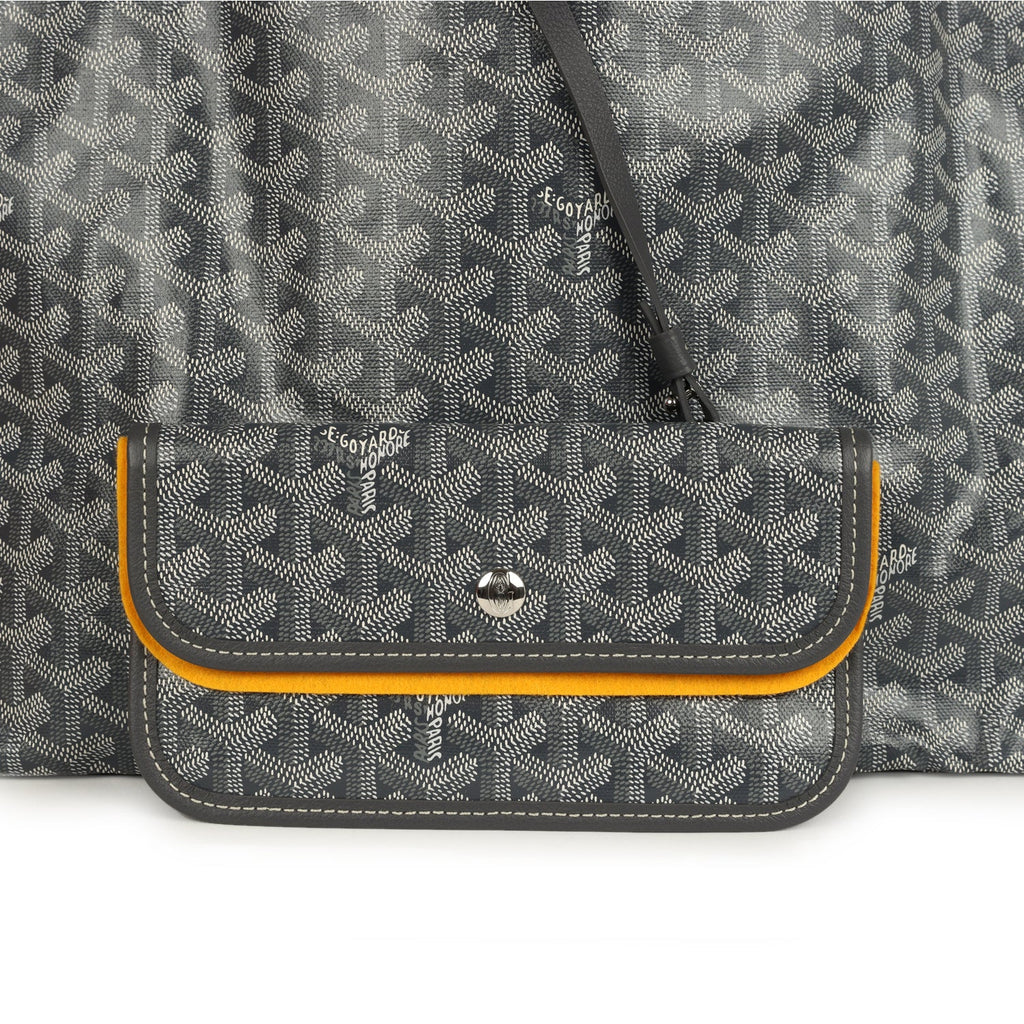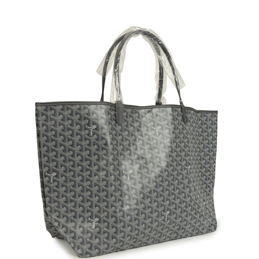 Goyard Goyardine Grey St. Louis GM Tote Bag Palladium Hardware Shop an authentic Goyard St. Louis GM in grey Goyardine canvas and chevroches calfskin with palladium hardware in new or never worn condition at Madison Avenue Couture.