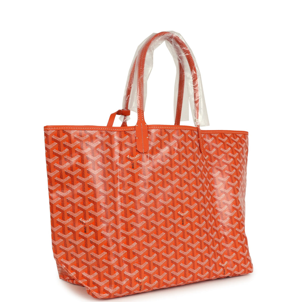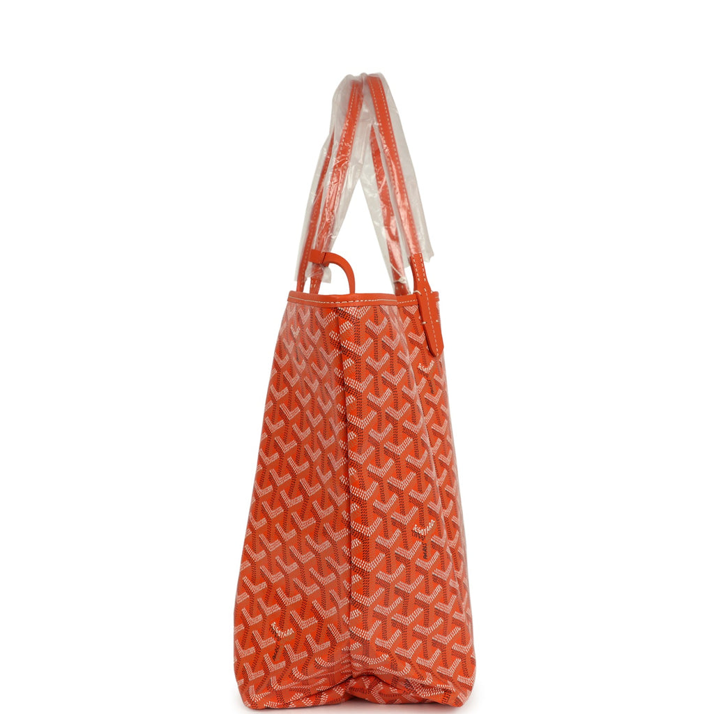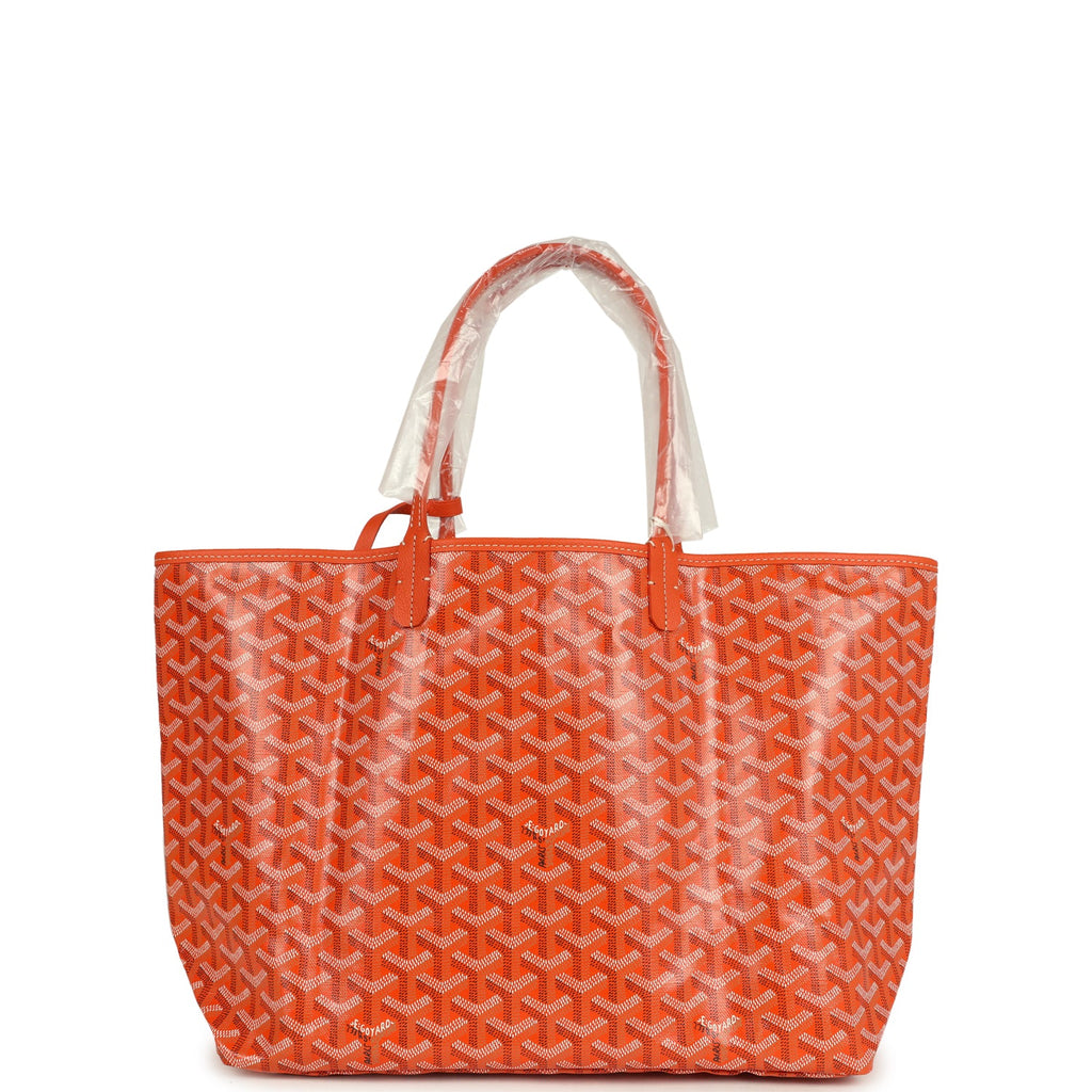 Goyard Goyardine Orange Saint Louis PM Tote Bag Palladium Hardware Shop an authentic Goyard Orange Goyardine Saint Louis PM tote with palladium hardware in new and never worn condition at Madison Avenue Couture.