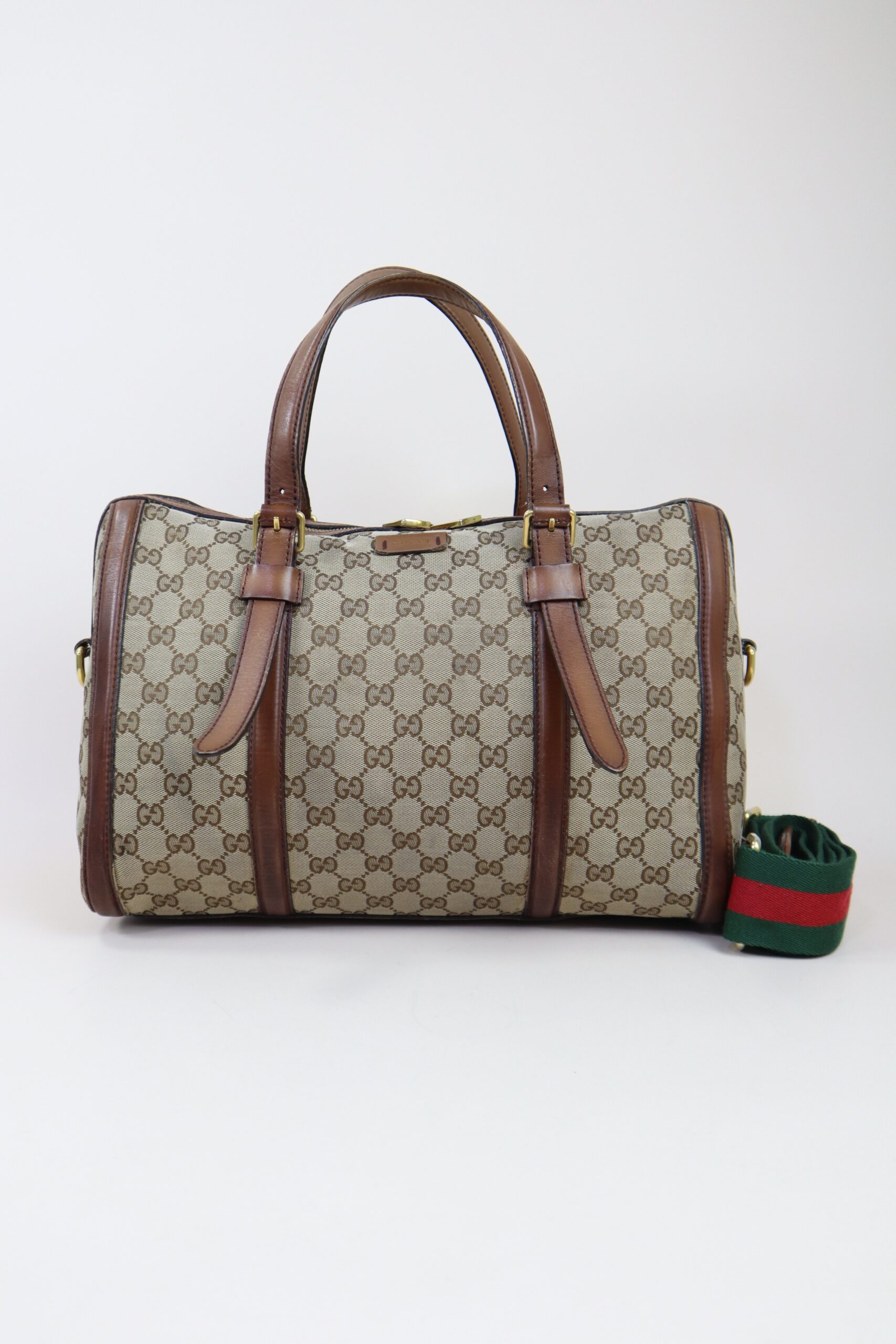 Be the first to review “Gucci Bicolor GG Web Boston Tote Bag with Ophidia Strap”