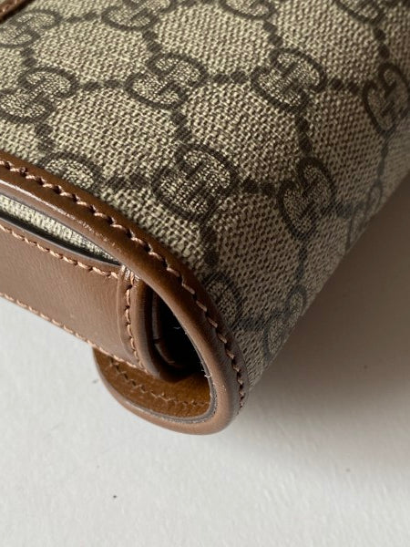 • Material: Ebony GG Canvas with Brown Leather Trim and Green/Red Web