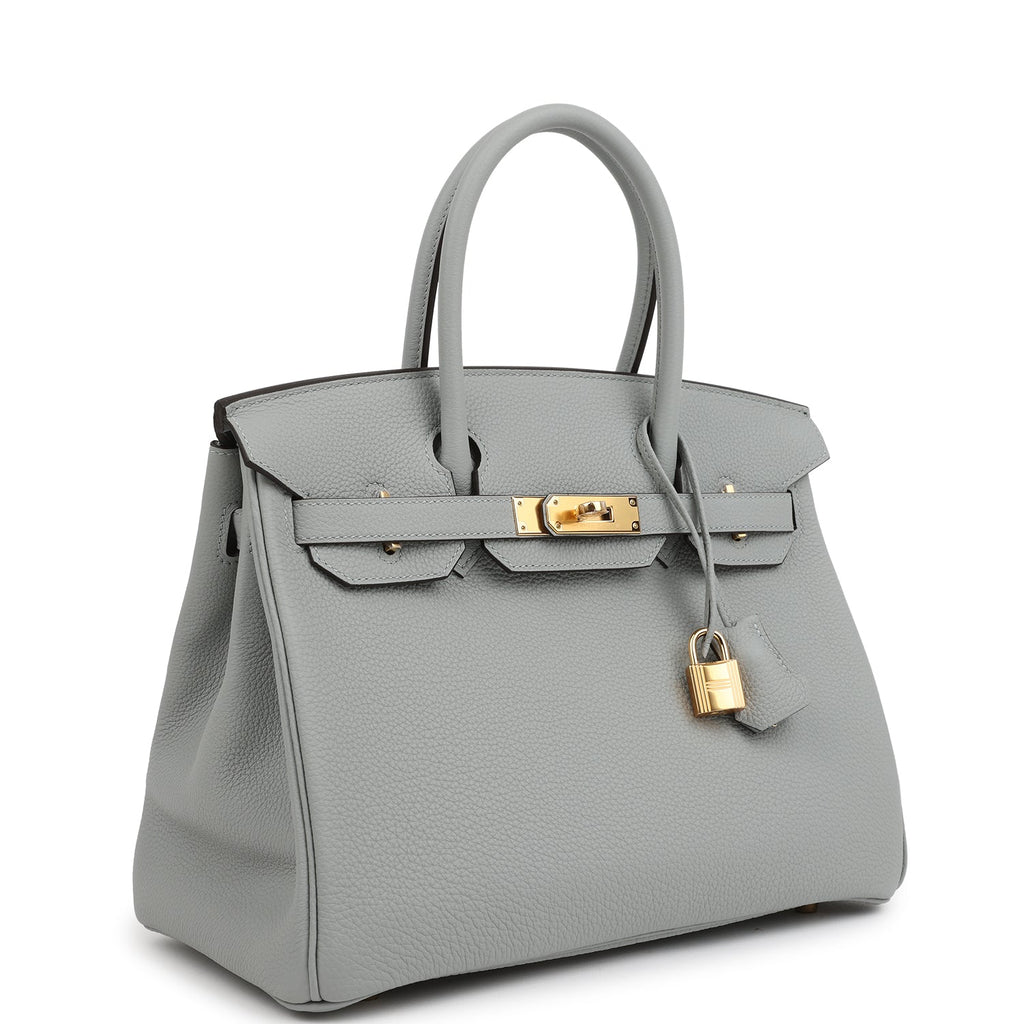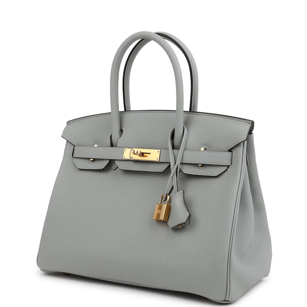 Hermes Birkin 30 Bleu Glacier Togo Gold Hardware Shop for an authentic Hermes Birkin 30 in Bleu Glacier togo leather with gold hardware in new and never worn condition at Madison Avenue Couture.