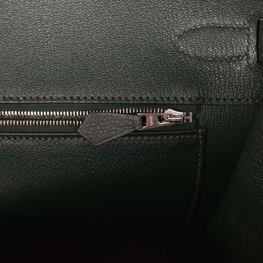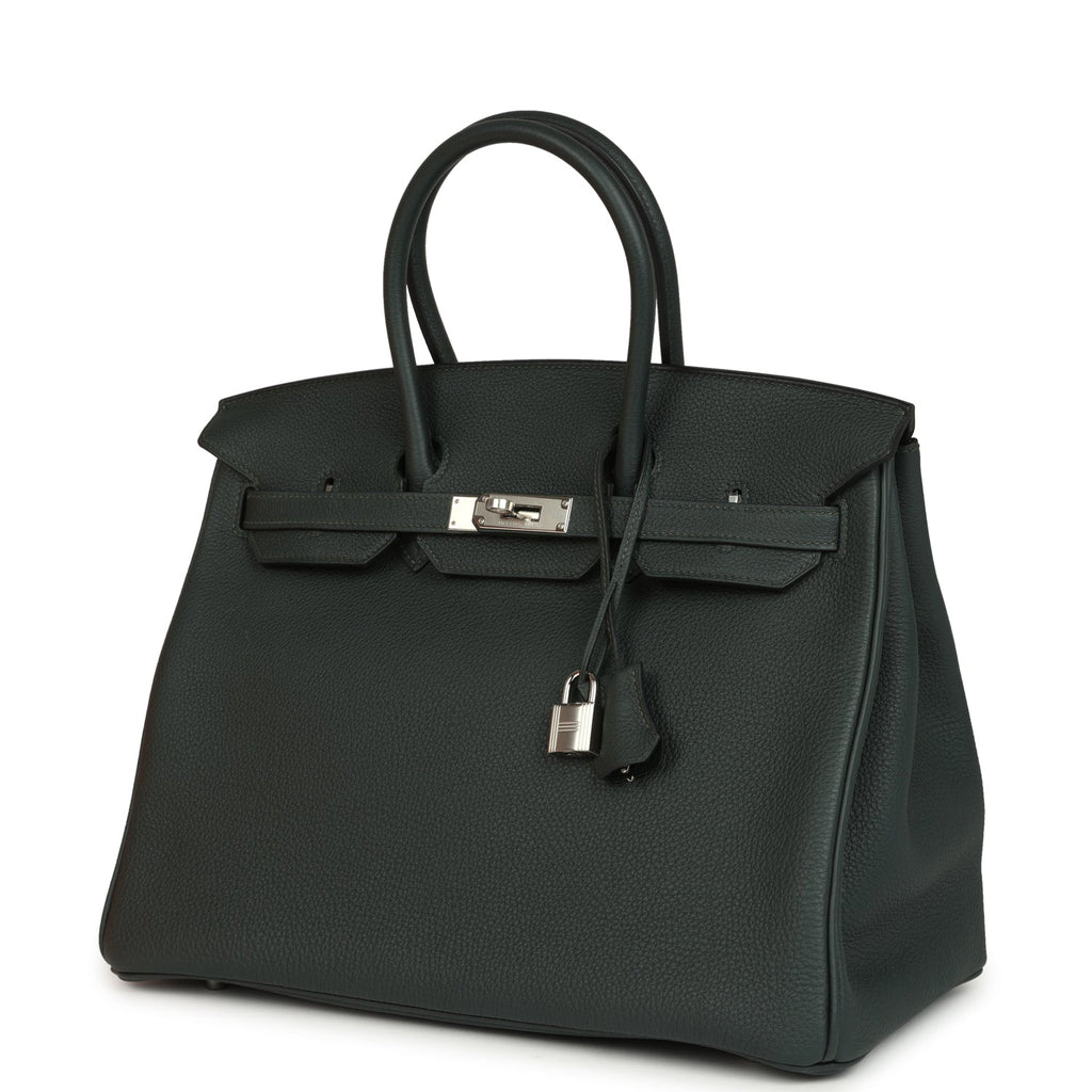 Hermes Birkin 35 Vert Fonce Togo Palladium Hardware Shop for an authentic Hermes Birkin 35 in Vert Fonce togo leather with palladium hardware in new and never worn condition at Madison Avenue Couture.