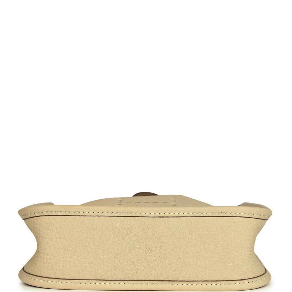 Hermes Evelyne TPM Craie Clemence Palladium Hardware Shop for an Authentic Hermes Evelyne TPM in Beton clemence leather with gold hardware in new and never worn condition at Madison Avenue Couture.