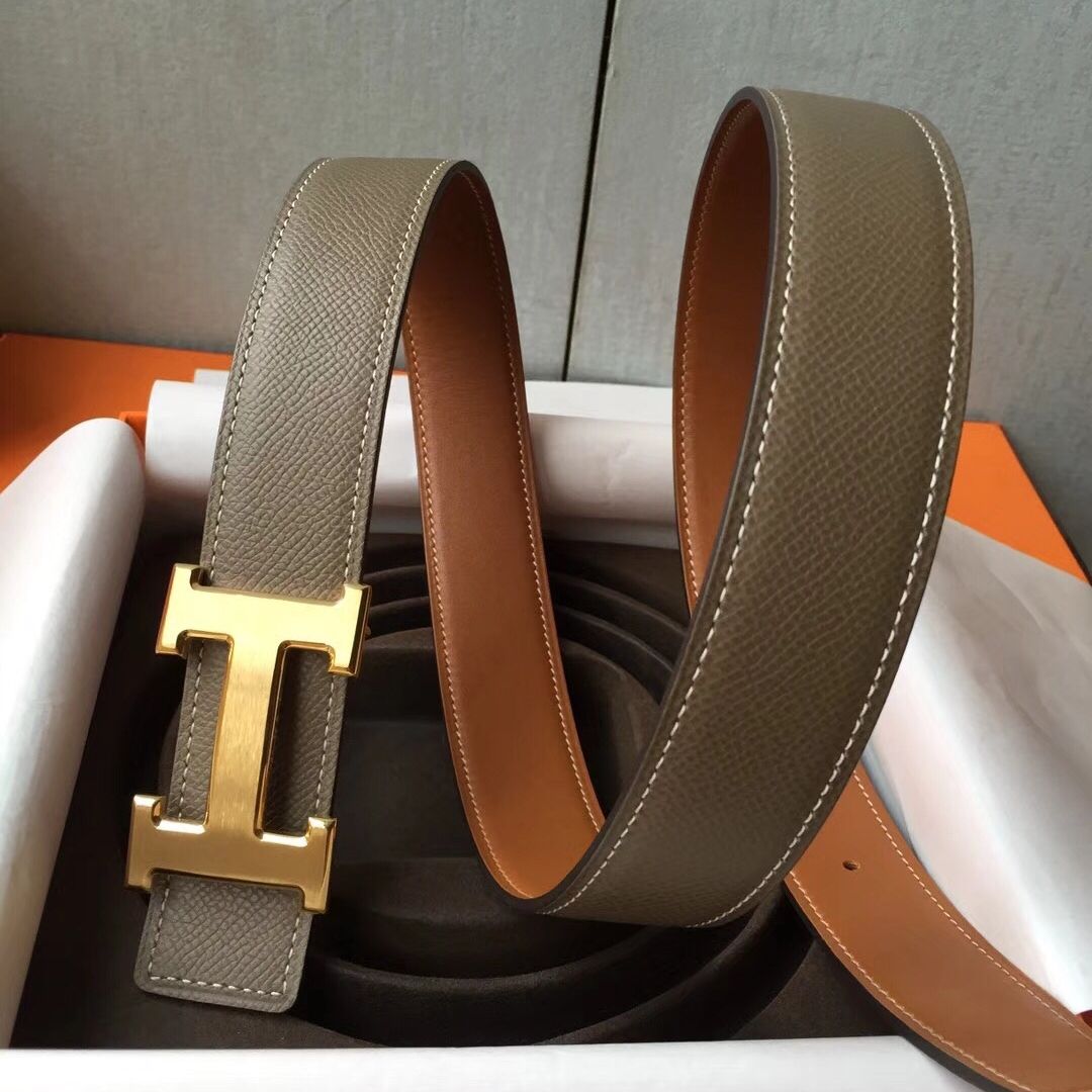 Hermes H Belt Buckle & Taupe Epsom 32 MM Strap