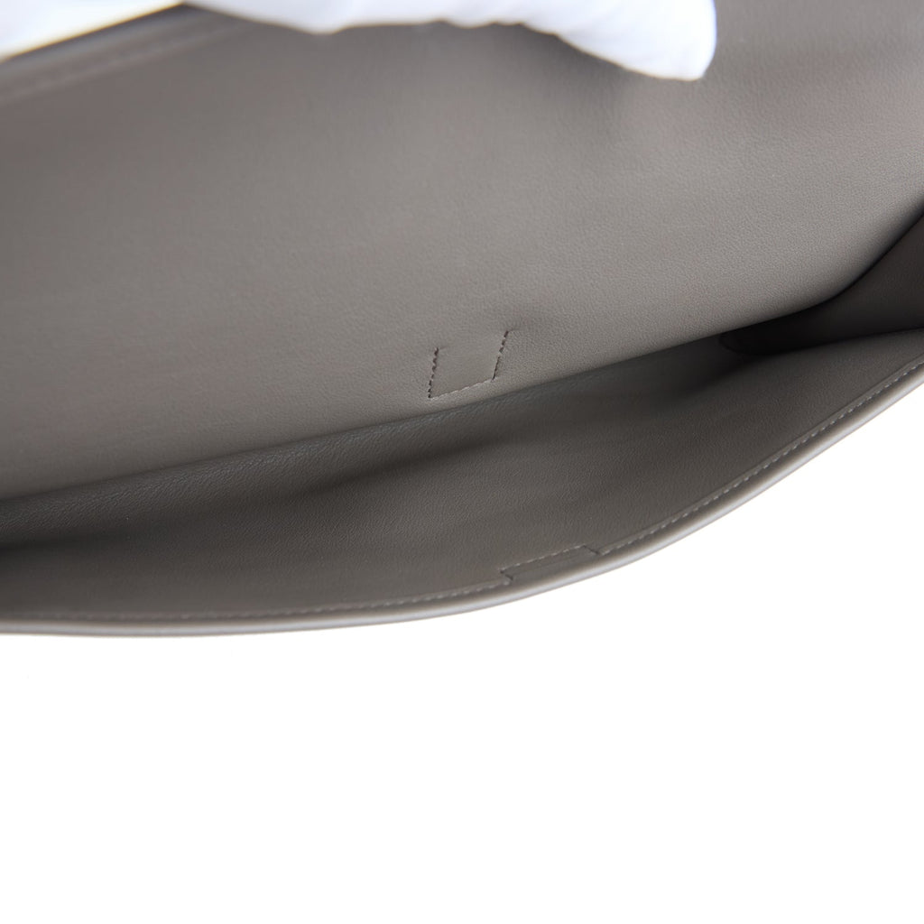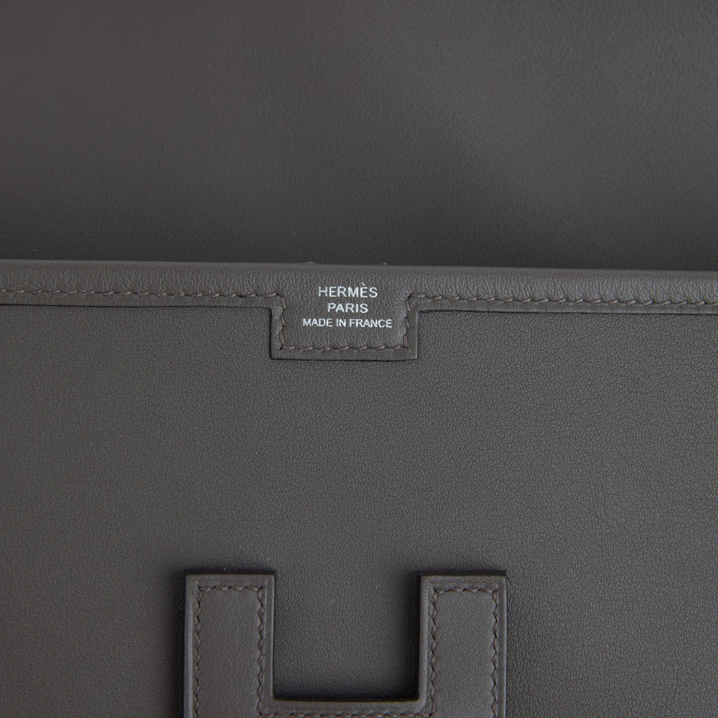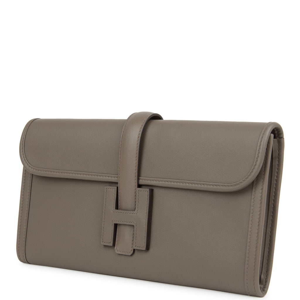 Hermes Jige Elan 29 Etain Swift Shop for an authentic Hermes Jige Elan Clutch in Etain swift leather in never worn condition at Madison Avenue Couture.