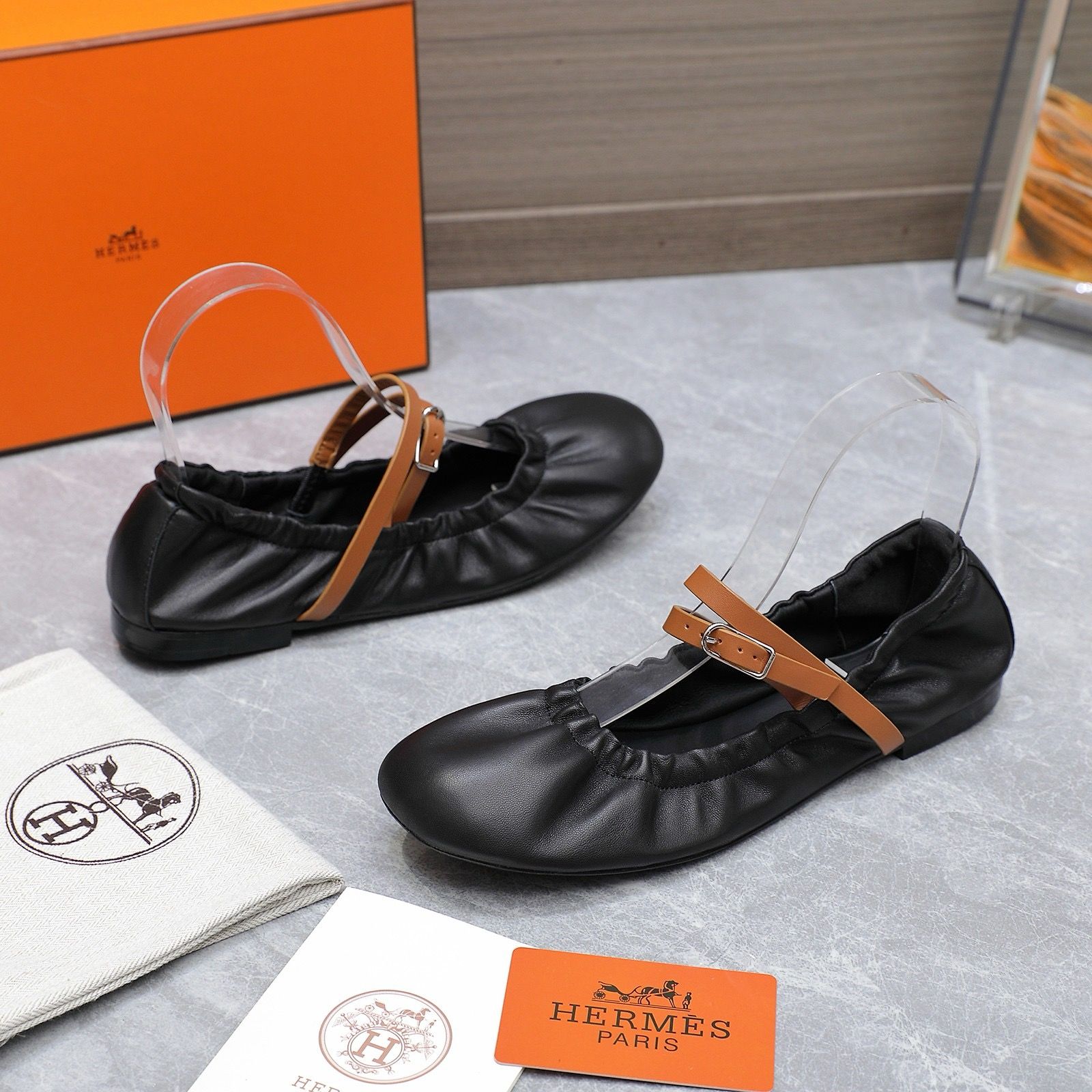 Hermes creates wear-forever shoes that’ll elevate anything you style them with. These Jolly Ballet flats have been crafted from nappa leather in a sweet Mary Jane shape with square toes and signature wrap-around ankle strap.