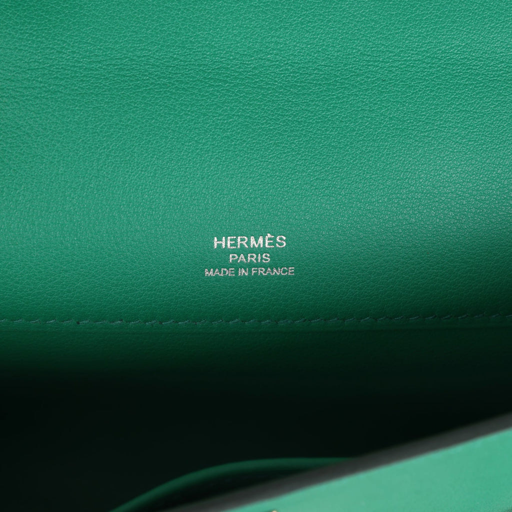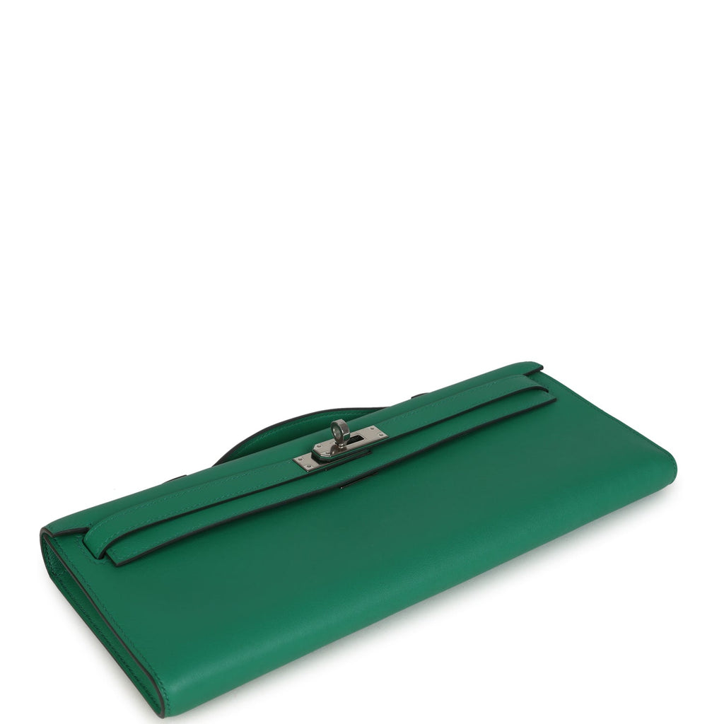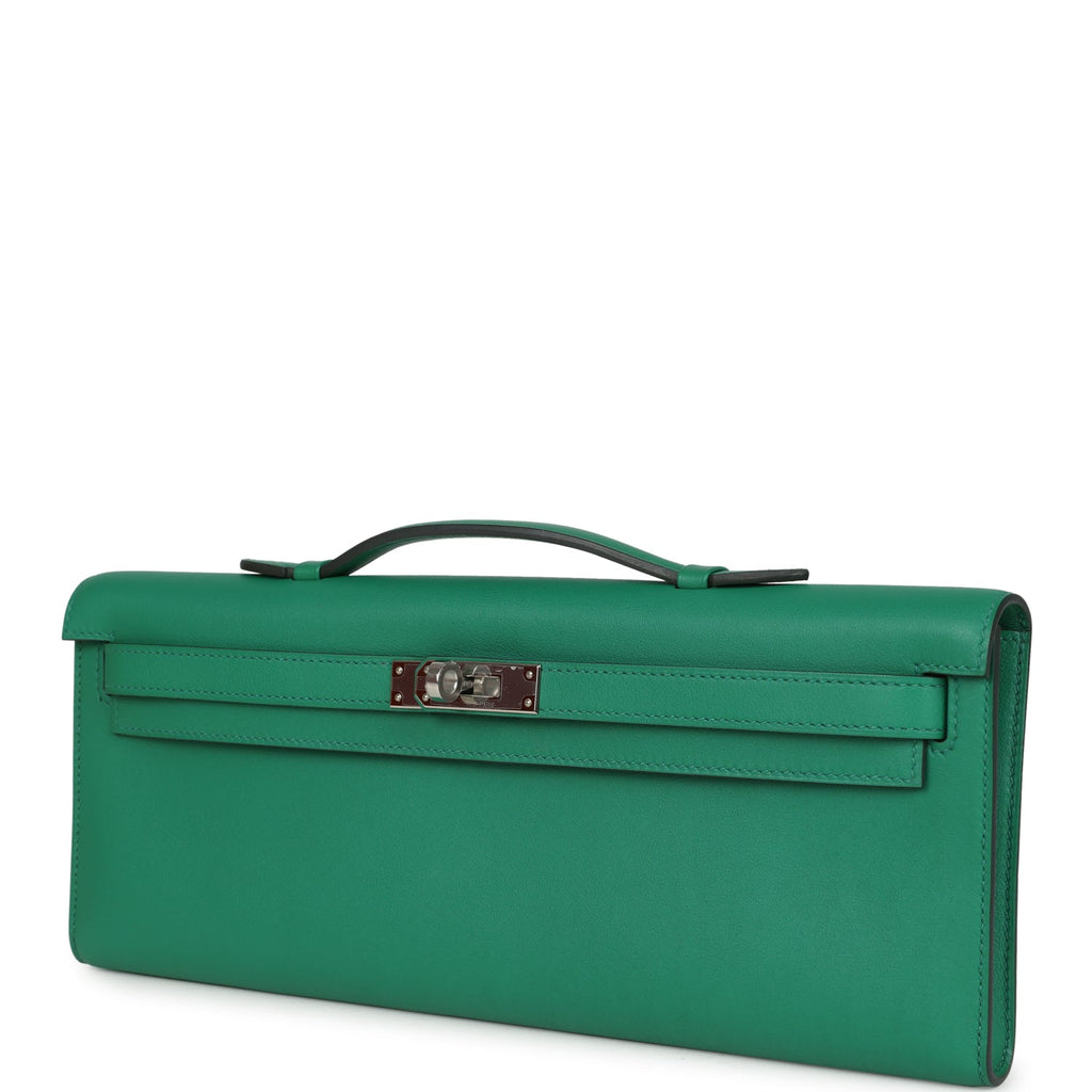 Hermes Kelly Cut Vert Vertigo Swift Palladium Hardware Shop for an authentic Hermes Kelly Cut in Vert Vertigo swift leather with palladium hardware in never worn condition at Madison Avenue Couture.