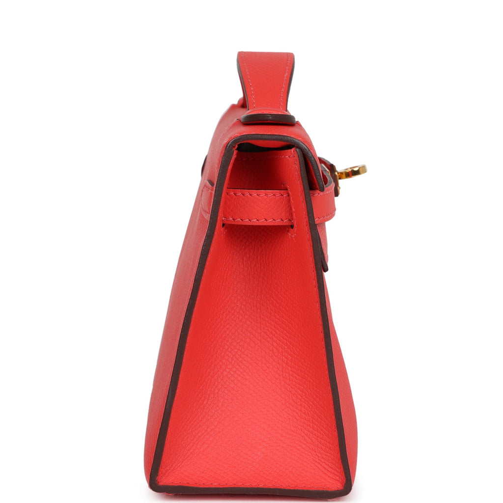 Hermes Kelly Pochette Rose Jaipur Epsom Gold Hardware Shop for an authentic Hermes Kelly Pochette in Rose Jaipur epsom leather with gold hardware in never worn condition at Madison Avenue Couture.