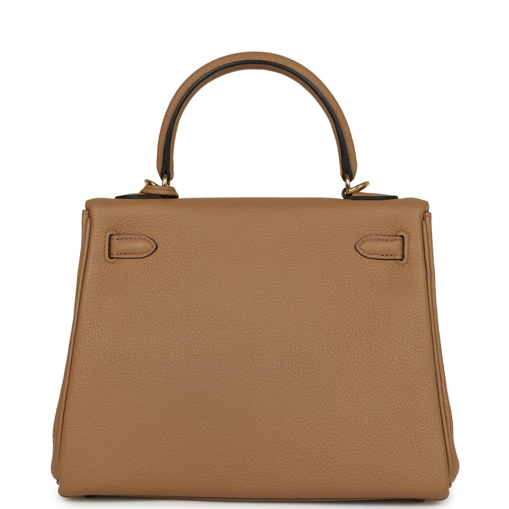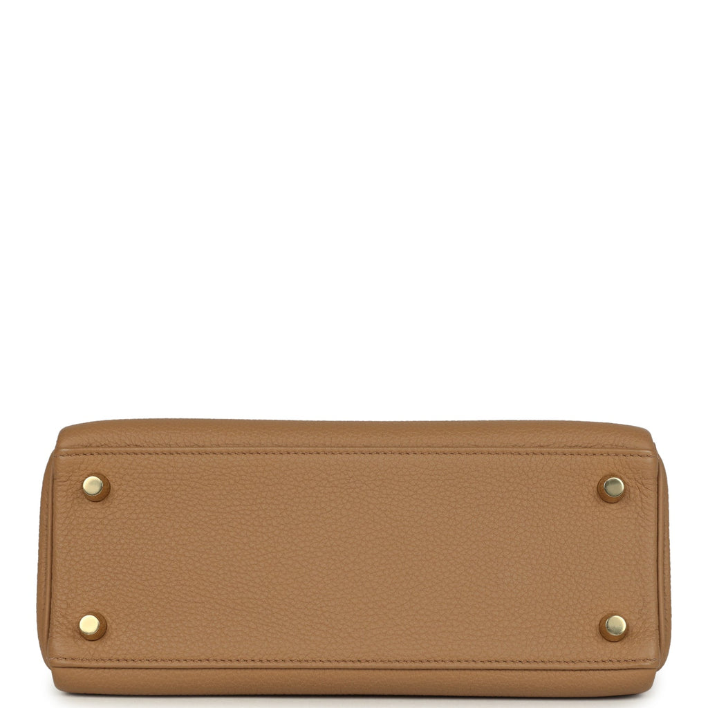 Hermes Kelly Retourne 25 Chai Togo Gold Hardware Shop for an authentic Hermes Kelly Retourne 25 in Chai togo leather with gold hardware in new and never worn condition at Madison Avenue Couture.