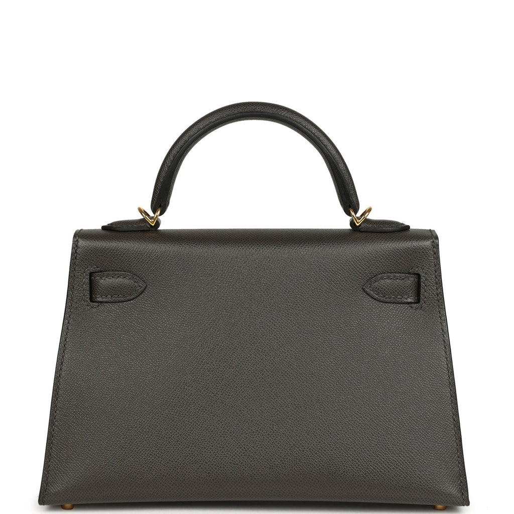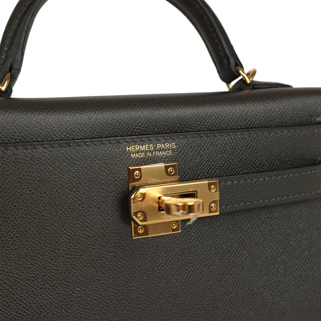 Hermes Kelly Sellier 20 Graphite Madame Gold Hardware Shop for an authentic Hermes Kelly Sellier 20 in Graphite Madame leather with gold hardware in new and never worn condition at Madison Avenue Couture.