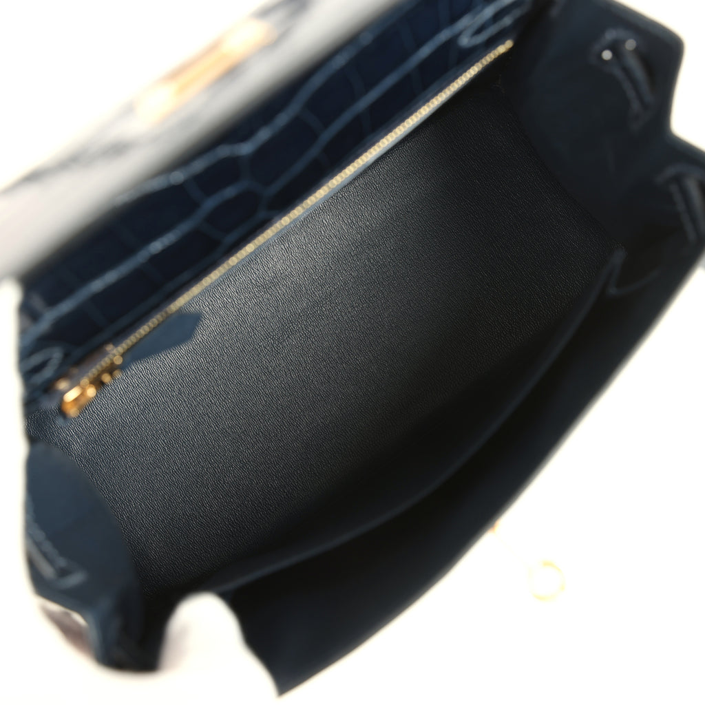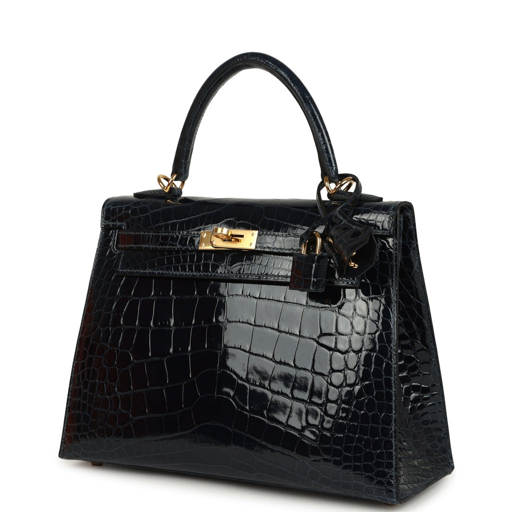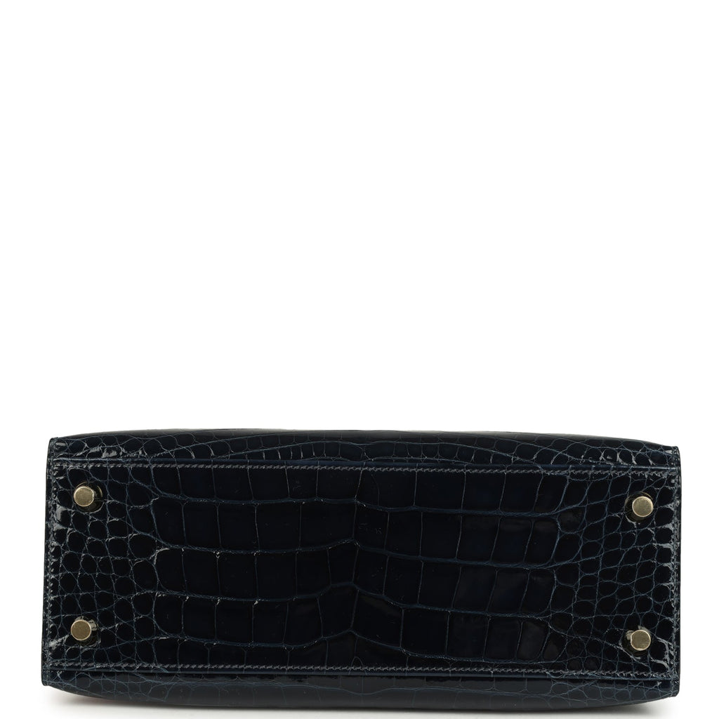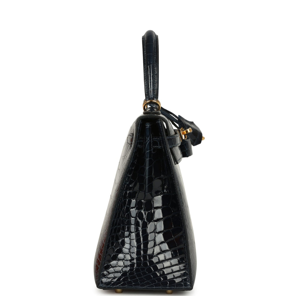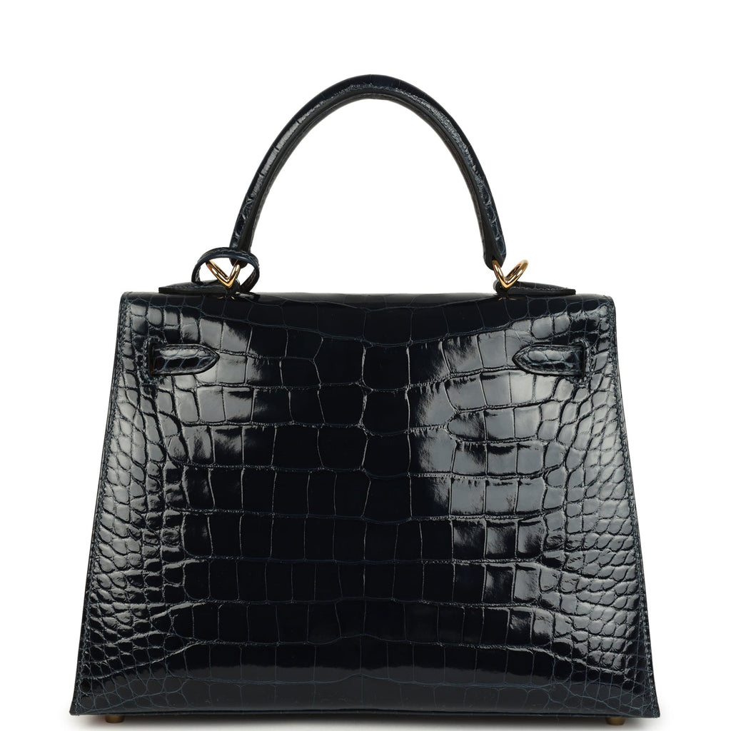 Hermes Kelly Sellier 25 Bleu Baltique Shiny Alligator Gold Hardware Shop for an authentic Hermes Sellier Kelly 25 in Bleu Baltique shiny alligator with gold hardware in new and never worn condition at Madison Avenue Couture.