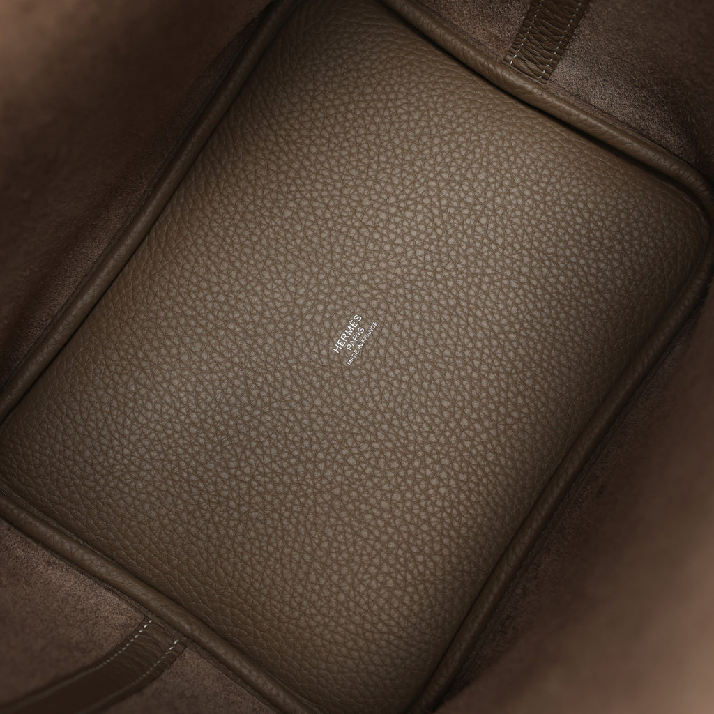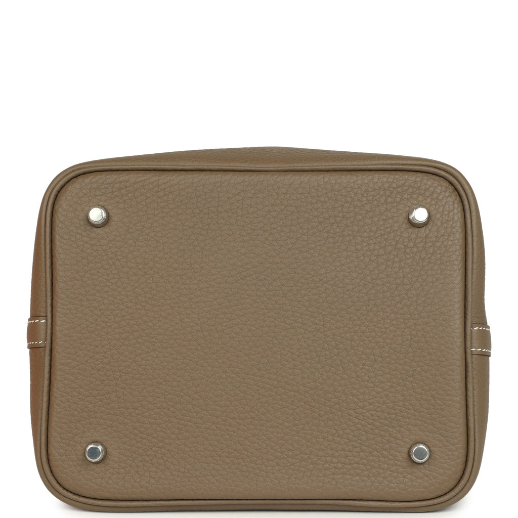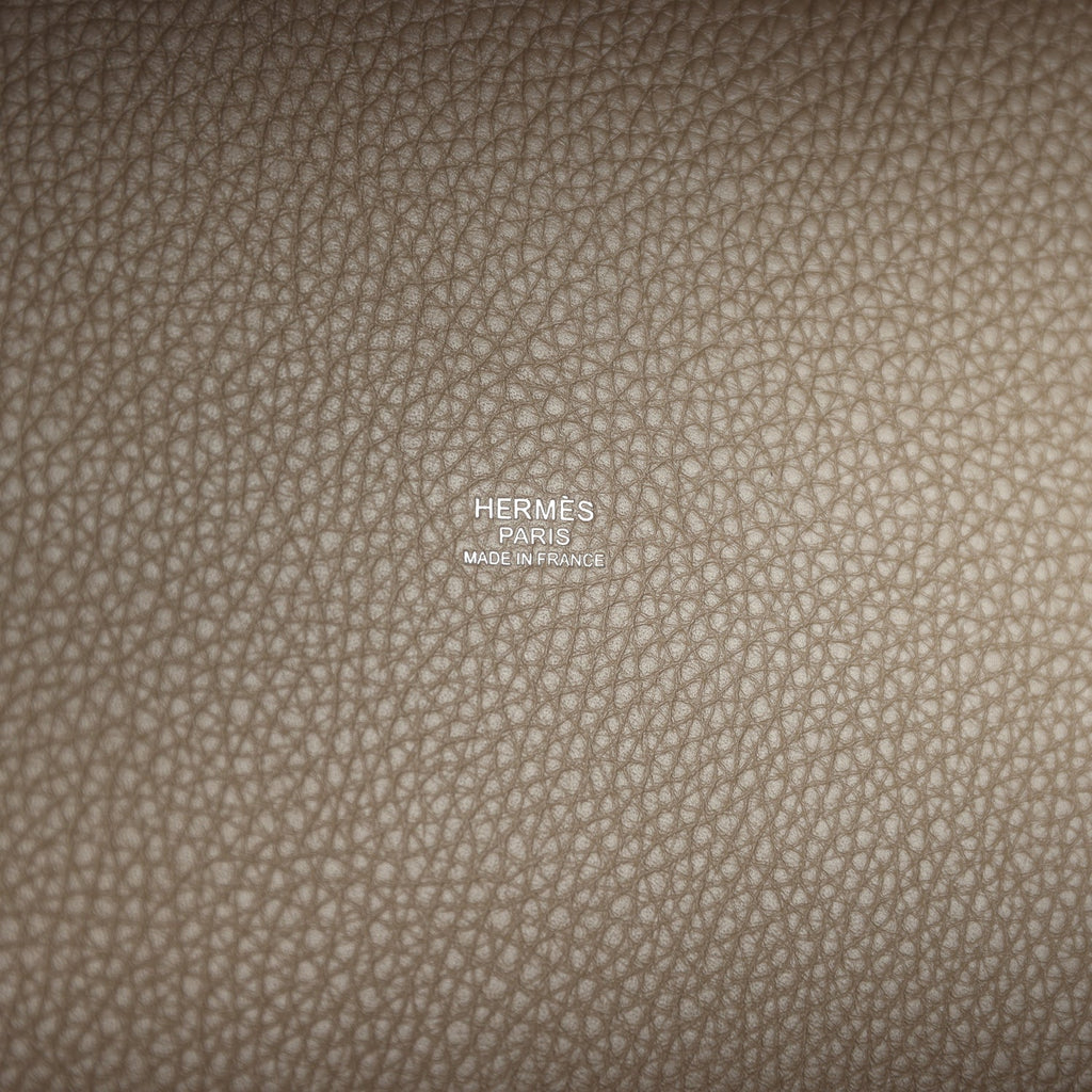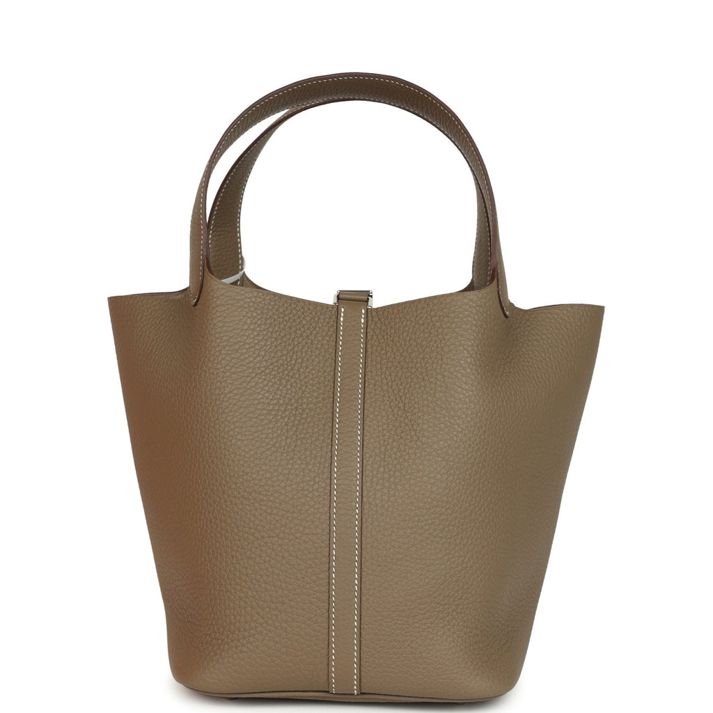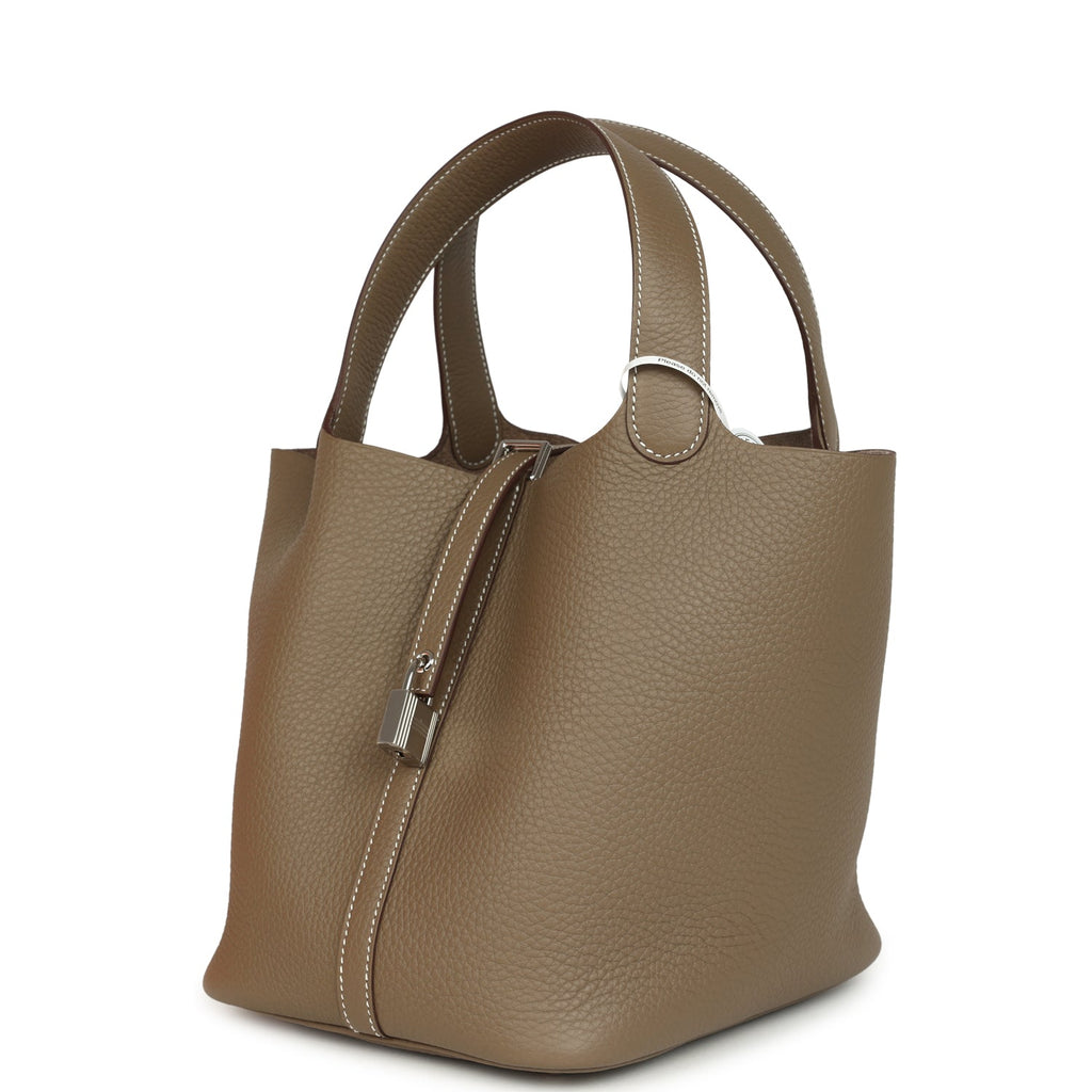 Hermes Picotin Lock 22 Etoupe Clemence Palladium Hardware Shop for an authentic Hermes Picotin Lock 22 in Etoupe clemence leather with palladium hardware in new and never worn condition at Madison Avenue Couture.