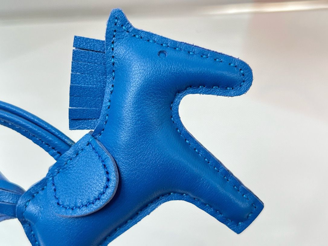 Hermes Rodeo PM Bag Charm in Blue France Lambskin