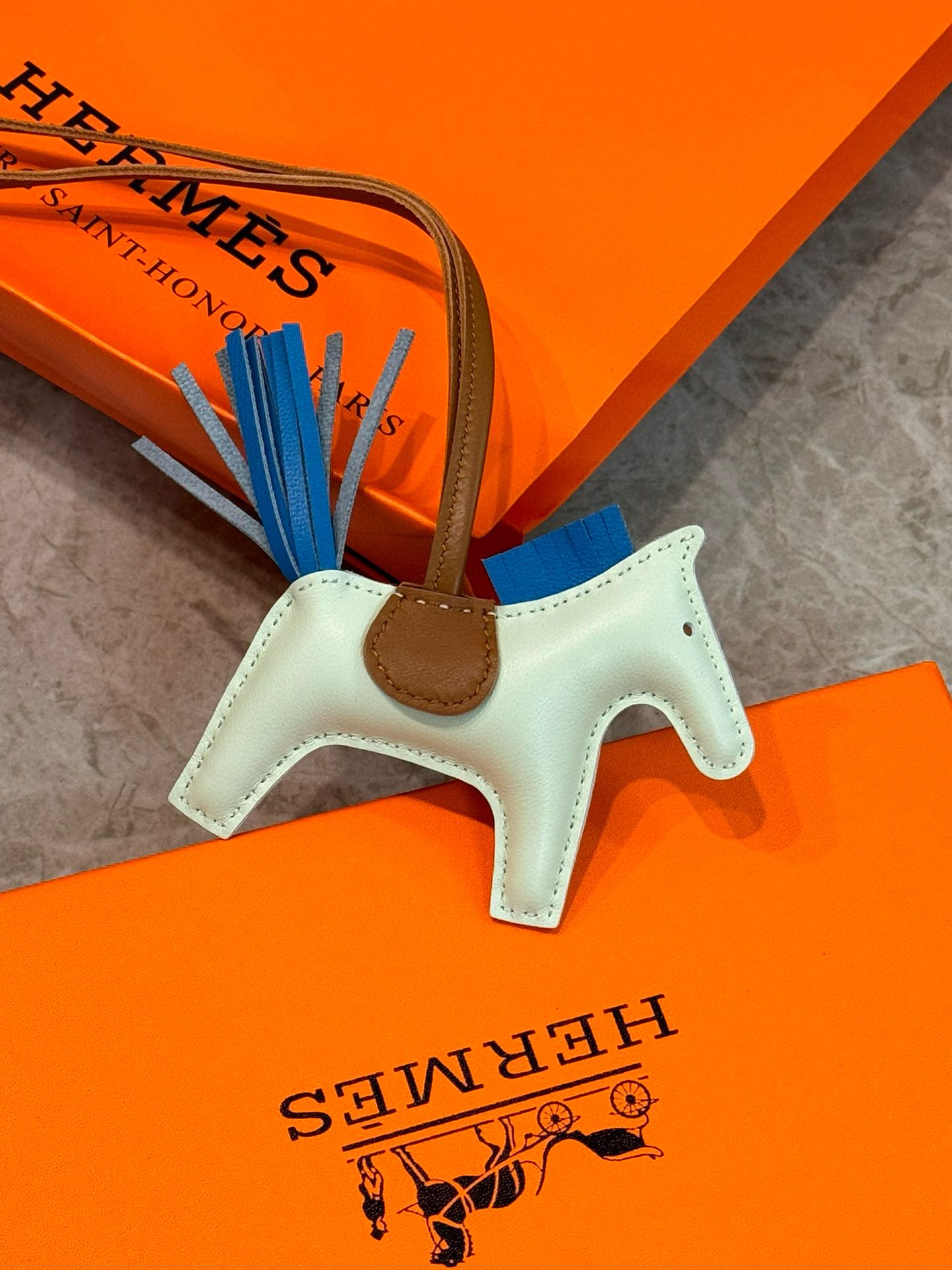 Hermes made a variety of bag charms, and the most popular one is definitely the rodeo bag charm, which is shaped after a toy horse. These little horsey are made from Milo lambskin,which refers to the Venus de Milo, evokes its natural beauty and elegance. Collected by fans of Hermès and handbags alike, these little galloping charms are dream pieces to dress up one’s precious possessions.This super hard to find charm is perfect for hanging off your Birkin or Kelly.