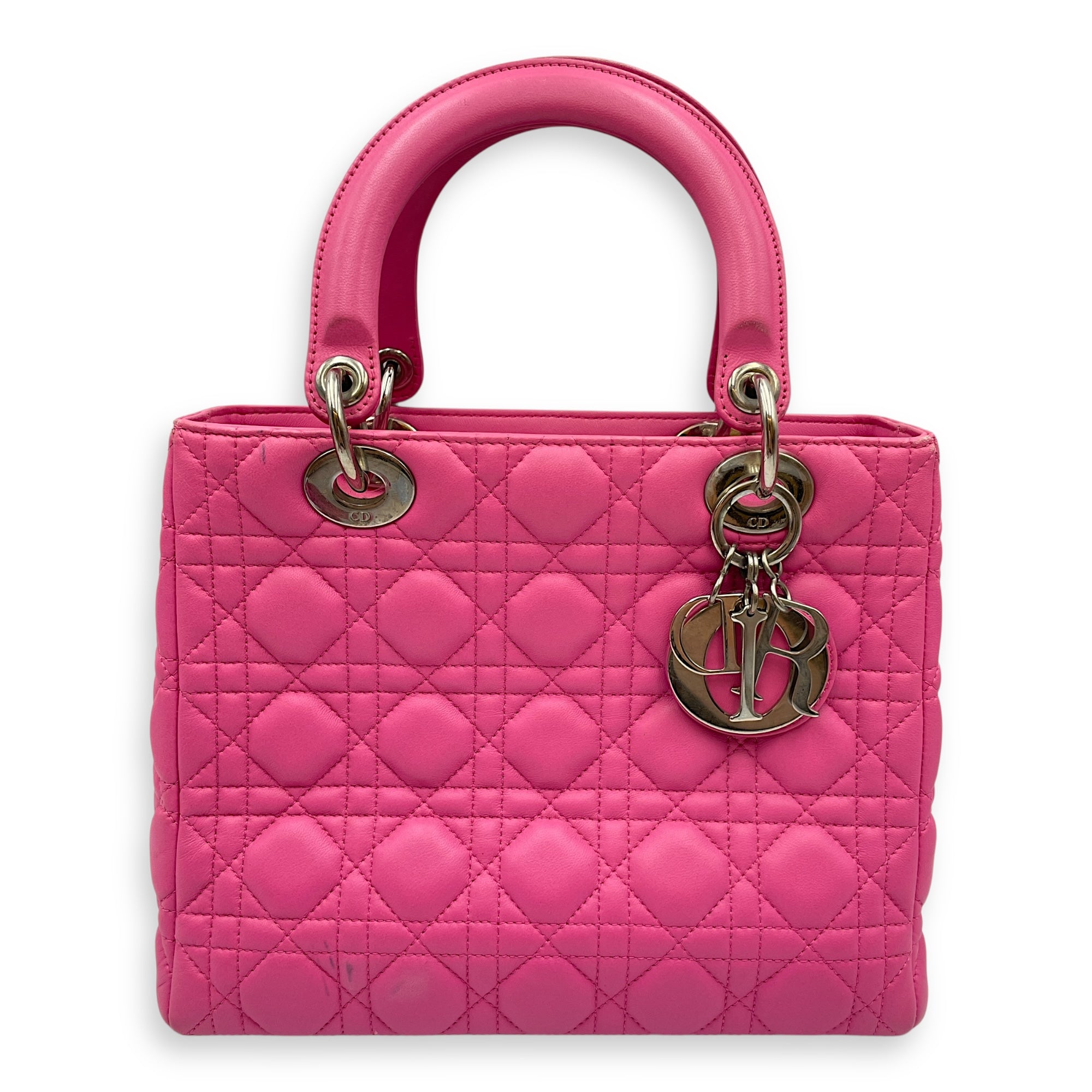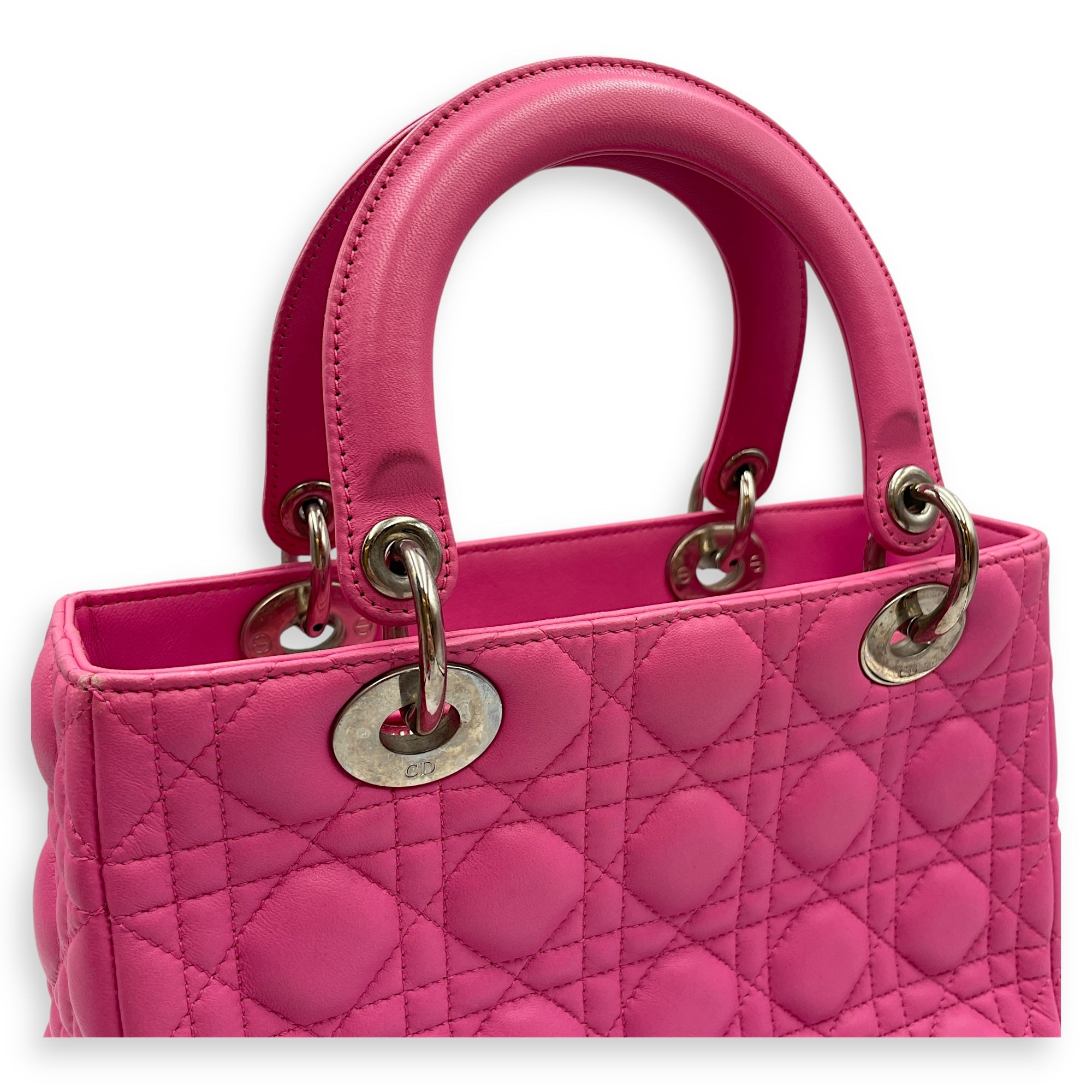 Lady Dior Medium Barbie Pink Top Handle Bag in Lambskin, Silver hardware